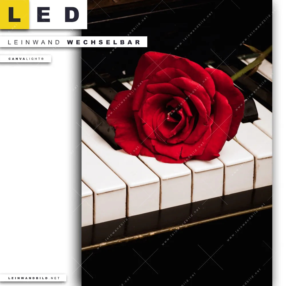 LED Leinwandbild Canvalight® TEX | Klavier & Rose | Hochformat