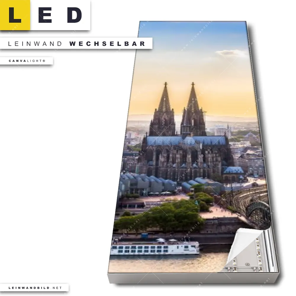 LED Leinwandbild Canvalight® TEX | Kölner Skyline | Schmal