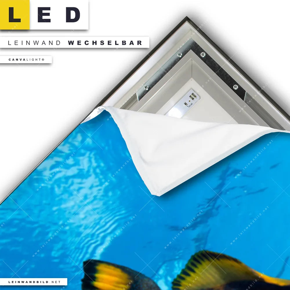 Du konfigurierst Dein individuelles LED Leinwandbild Canvalight® TEX | Korallen & Fische | Schmal und wir produzieren es NEU für Dich. Unsere Strand - Meer, Tierwelt LED Bilder mit wechselbarer Textil-Leinwand sind KEINE Lagerware. Du bist Dir unsicher, welches Motiv oder Format das richtige für dein individuelles Canvalight® Leuchtbild ist, dann helfen wir dir gerne weiter und beraten dich!