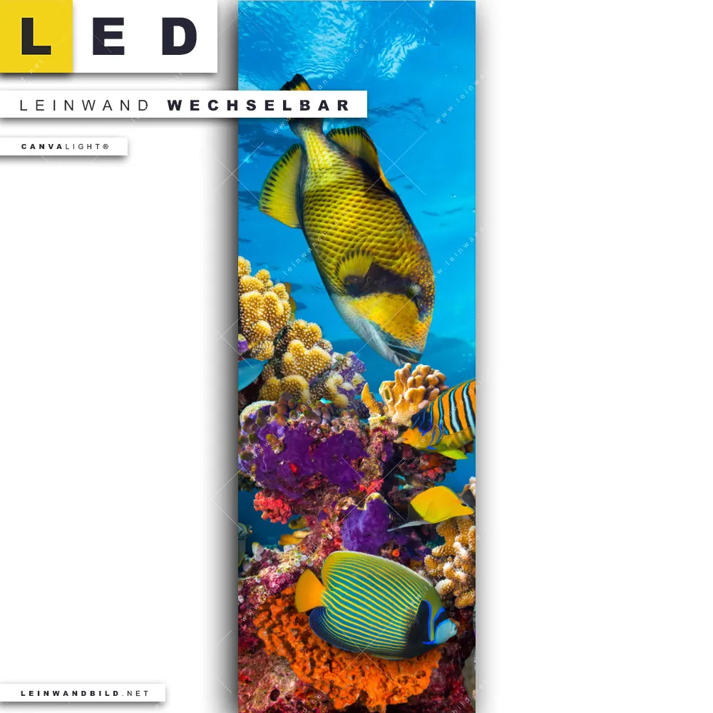 LED Leinwandbild Canvalight® TEX | Korallen & Fische | Schmal