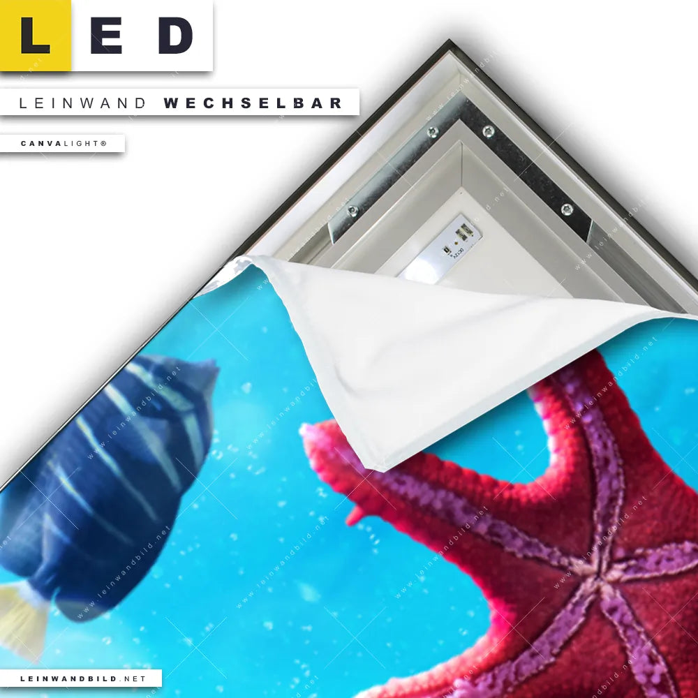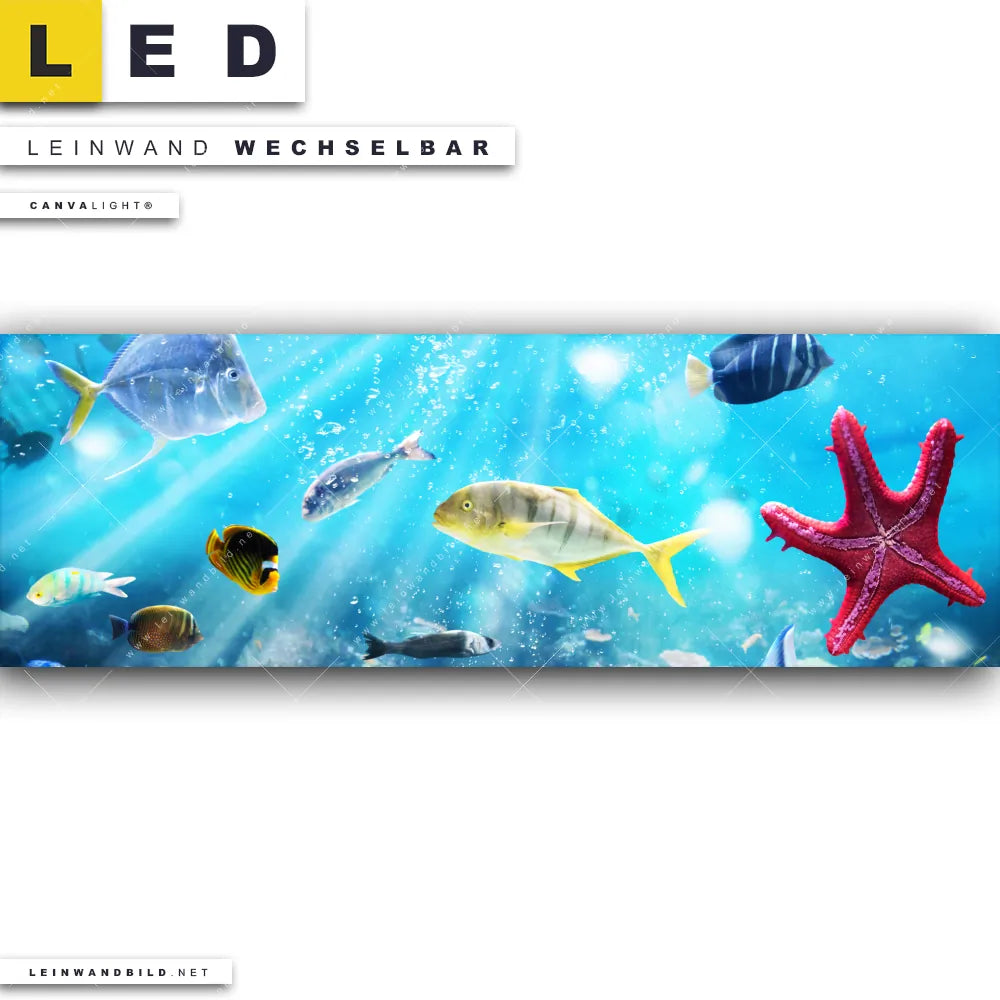 Du bist auf der Suche nach einem Strand - Meer, Tierwelt LED Leinwandbild im Panorama-Format? Begriffe wie Ozean, Unterwasserwelt, Korallenriff, Korallen, Fische, Riff, Urlaub - Reisen haben Dich auf der Suche nach Deinem neuen XXL LED Wandbild mit wechselbarer Leinwand inspiriert? Farben wie Blau, Rot, Lila dürfen auf Deinem neuen extra breiten Leinwand-LED-Bild nicht fehlen und Leuchtbilder im Modern Art Stil passen perfekt zu Deinem Einrichtungsstil?