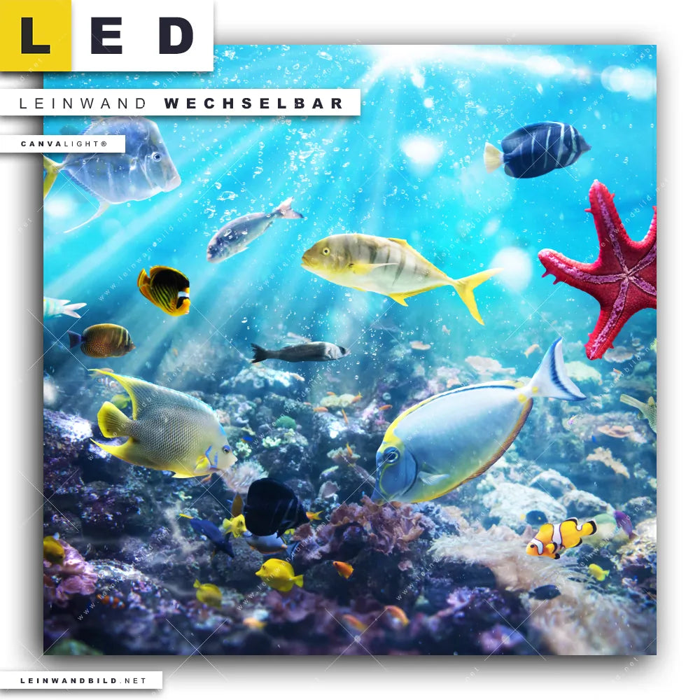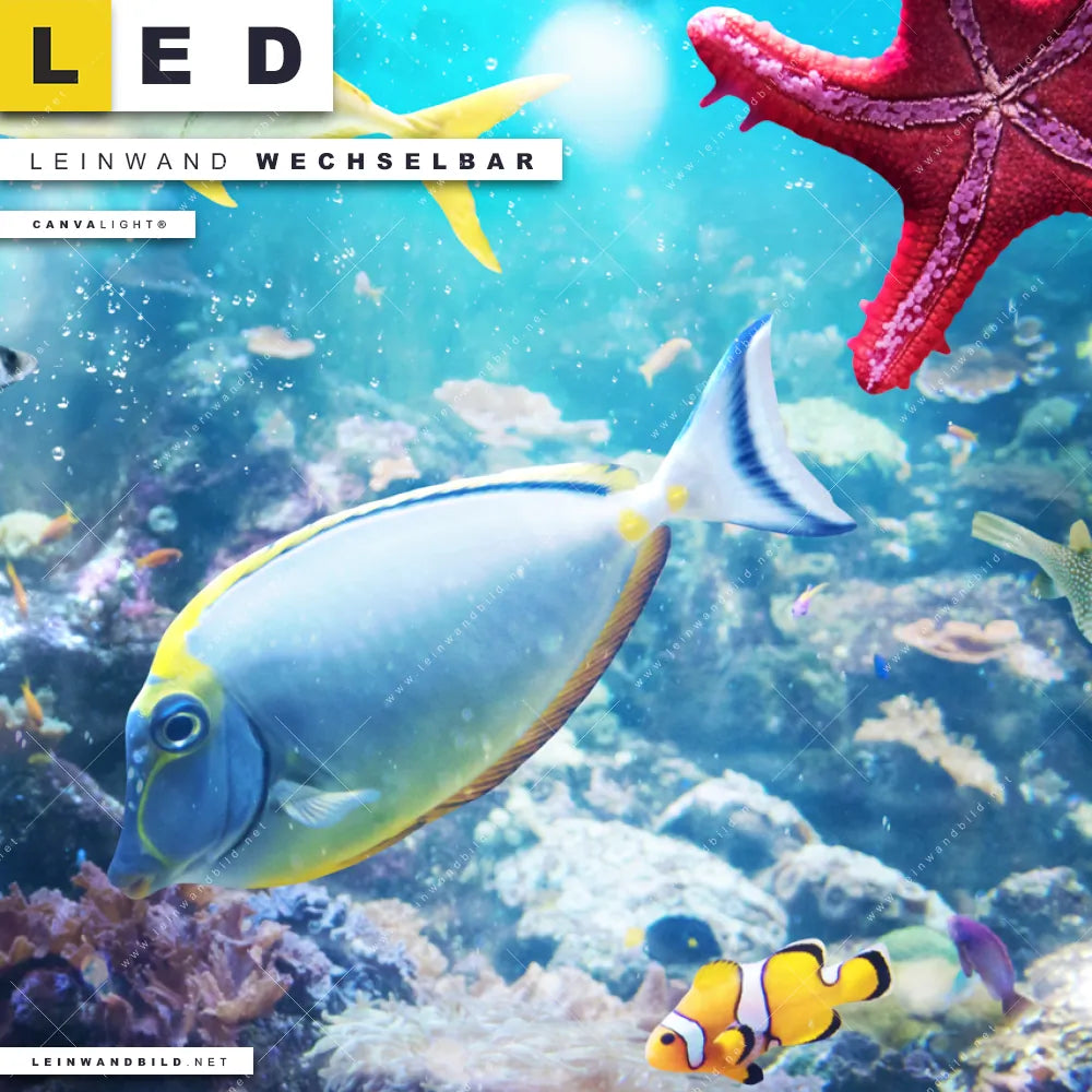 Du bist auf der Suche nach einem Strand - Meer, Tierwelt LED Leinwandbild im Quadratischen Format? Begriffe wie Ozean, Unterwasserwelt, Korallenriff, Korallen, Fische, Riff, Urlaub - Reisen haben Dich auf der Suche nach Deinem neuen XXL LED Wandbild mit wechselbarer Leinwand inspiriert? Farben wie Blau, Rot, Lila dürfen auf Deinem neuen Leinwand-LED-Bild nicht fehlen und Leuchtbilder im Modern Art Stil passen perfekt zu Deinem Einrichtungsstil?