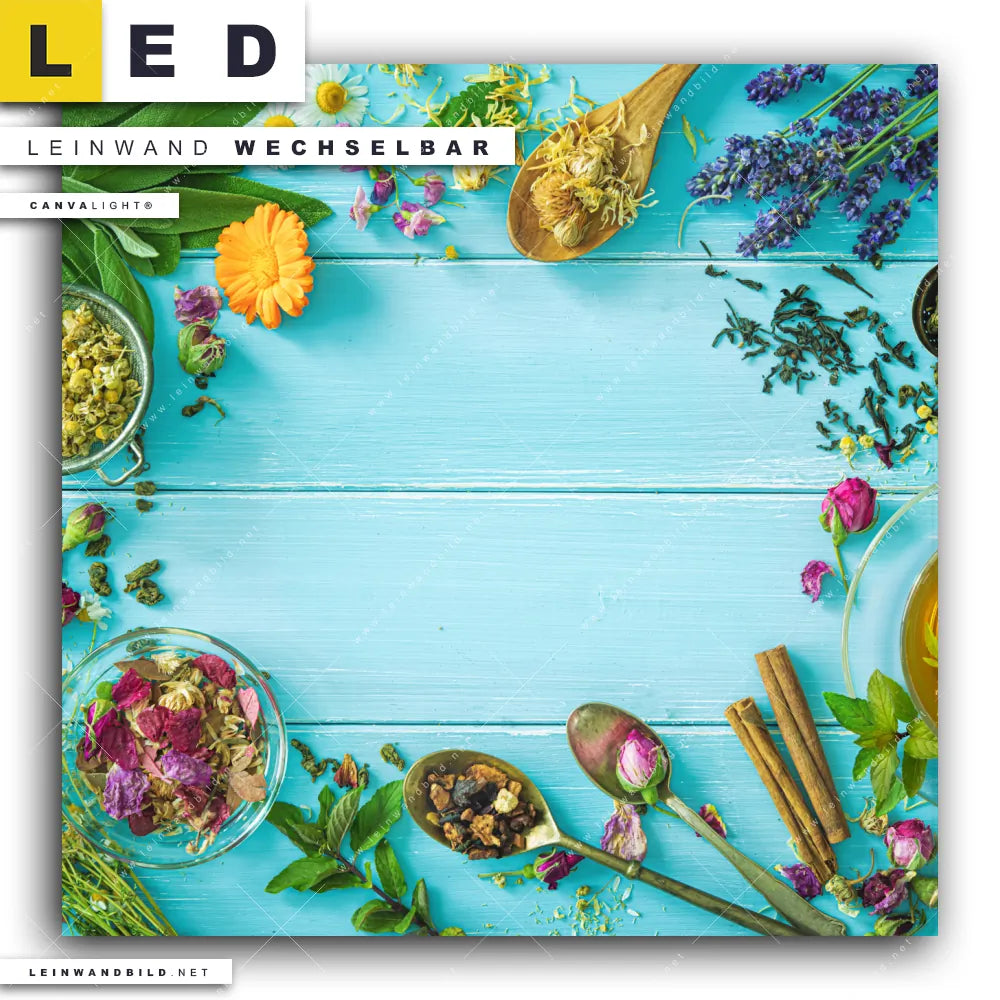 Du bist auf der Suche nach einem Essen - Trinken, Blumen - Botanik LED Leinwandbild im Quadratischen Format? Begriffe wie Kräuter, Blumen, Blüten, Minze, Salbei, Kamille, Lavendel haben Dich auf der Suche nach Deinem neuen XXL LED Wandbild mit wechselbarer Leinwand inspiriert? Farben wie Grün, Hellblau, Blau, Türkis dürfen auf Deinem neuen Leinwand-LED-Bild nicht fehlen und Leuchtbilder im Natürlich - Realistisch, Retro - Vintage Stil passen perfekt zu Deinem Einrichtungsstil?