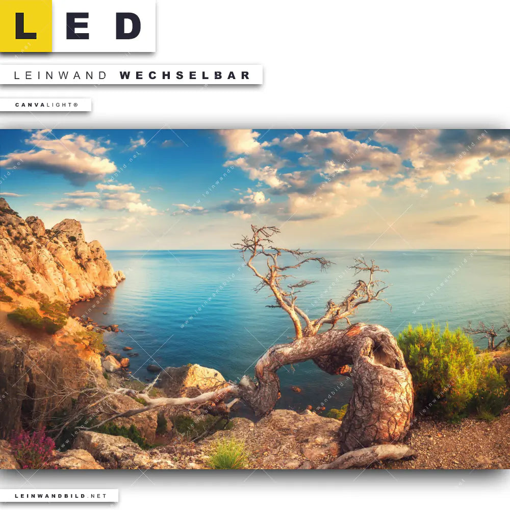 LED Leinwandbild Canvalight® TEX | Küstenlandschaft mit altem Baum | Querformat