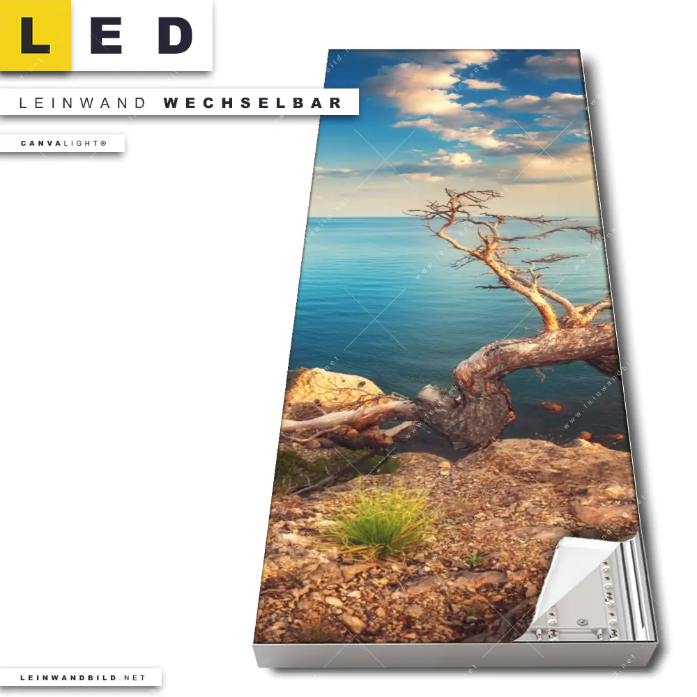 Du konfigurierst Dein individuelles LED Leinwandbild Canvalight® TEX | Küstenlandschaft mit altem Baum | Schmal und wir produzieren es NEU für Dich. Unsere Landschaften, Strand - Meer LED Bilder mit wechselbarer Textil-Leinwand sind KEINE Lagerware. Du bist Dir unsicher, welches Motiv oder Format das richtige für dein individuelles Canvalight® Leuchtbild ist, dann helfen wir dir gerne weiter und beraten dich!