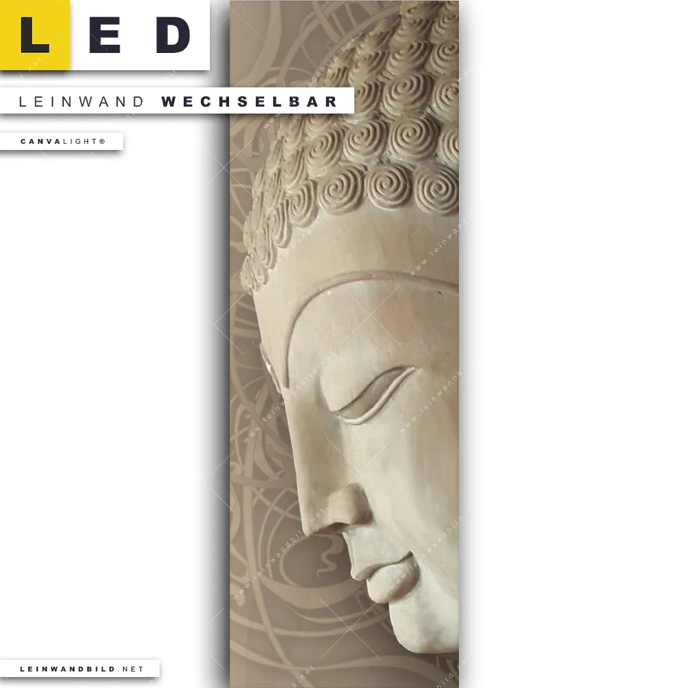 LED Leinwandbild Canvalight® TEX | Lächelnder Buddha | Schmal