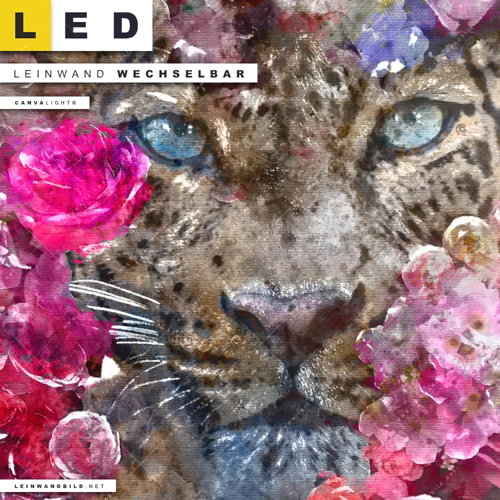 LED Leinwandbild Canvalight® TEX | Leopard & Blumen | Panorama