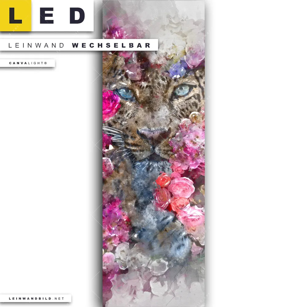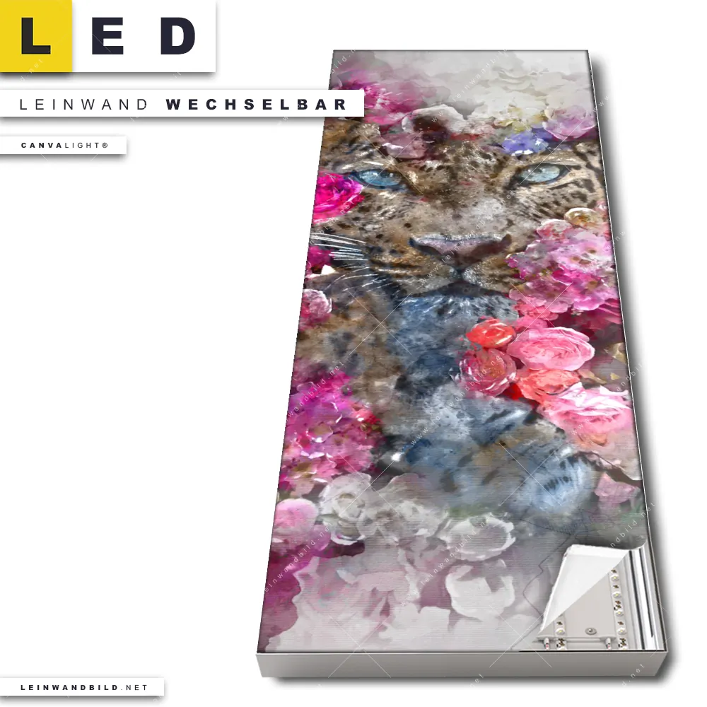 LED Leinwandbild Canvalight® TEX | Leopard & Blumen | Schmal