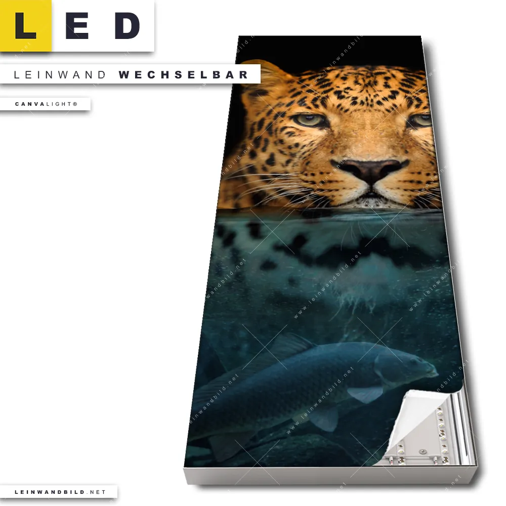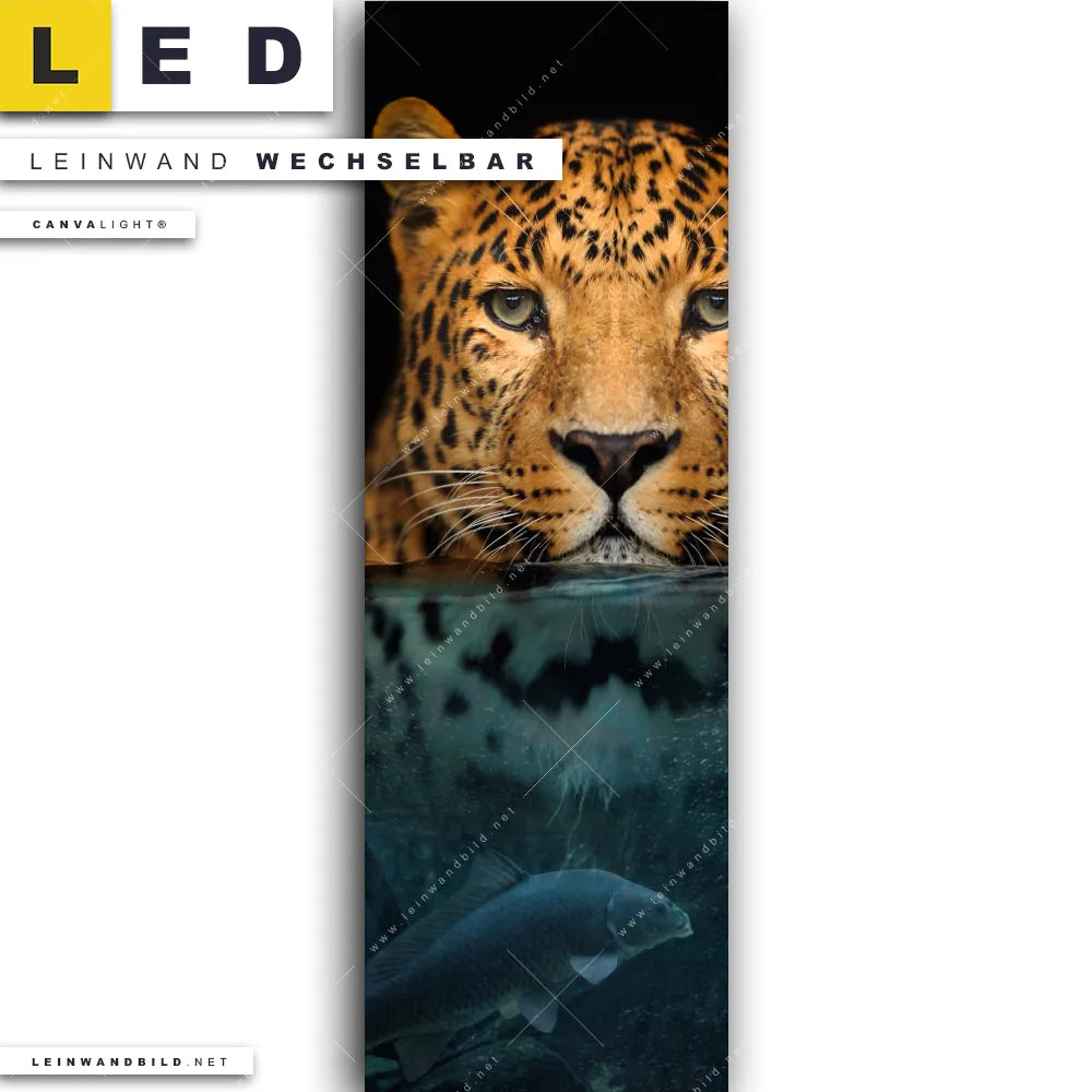 LED Leinwandbild Canvalight® TEX | Leopard im Wasser | Schmal