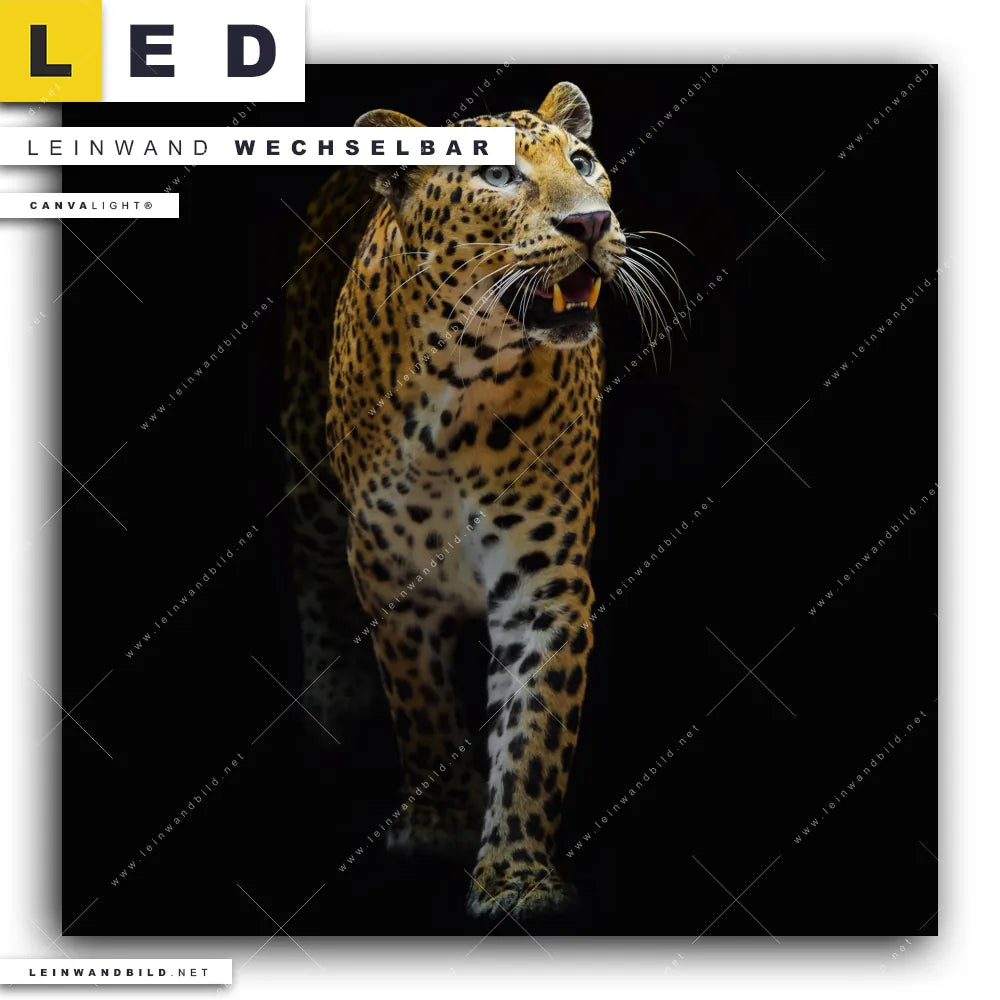 Du bist auf der Suche nach einem Tierwelt LED Leinwandbild im Quadratischen Format? Begriffe wie Raubkatze, Leopard, Afrika, Dschungel, Dunkelheit, Nacht haben Dich auf der Suche nach Deinem neuen XXL LED Wandbild mit wechselbarer Leinwand inspiriert? Farben wie Schwarz, Beige dürfen auf Deinem neuen Leinwand-LED-Bild nicht fehlen und Leuchtbilder im Natürlich - Realistisch Stil passen perfekt zu Deinem Einrichtungsstil?
