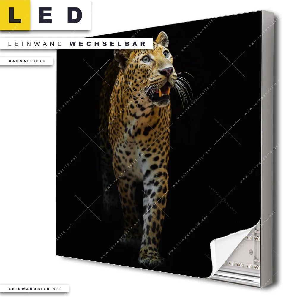 LED Leinwandbild Canvalight® TEX | Leopard in der Dunkelheit | Quadrat