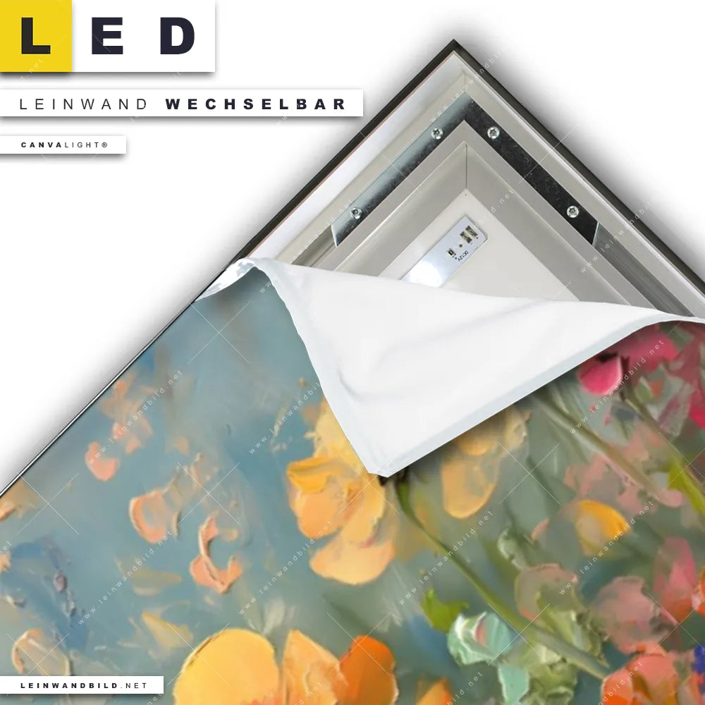 Du konfigurierst Dein individuelles LED Leinwandbild Canvalight® TEX | Leuchtende Frühlingsblumen | Panorama und wir produzieren es NEU für Dich. Unsere Blumen - Botanik LED Bilder mit wechselbarer Textil-Leinwand sind KEINE Lagerware. Du bist Dir unsicher, welches Motiv oder Format das richtige für dein individuelles Canvalight® Leuchtbild ist, dann helfen wir dir gerne weiter und beraten dich!