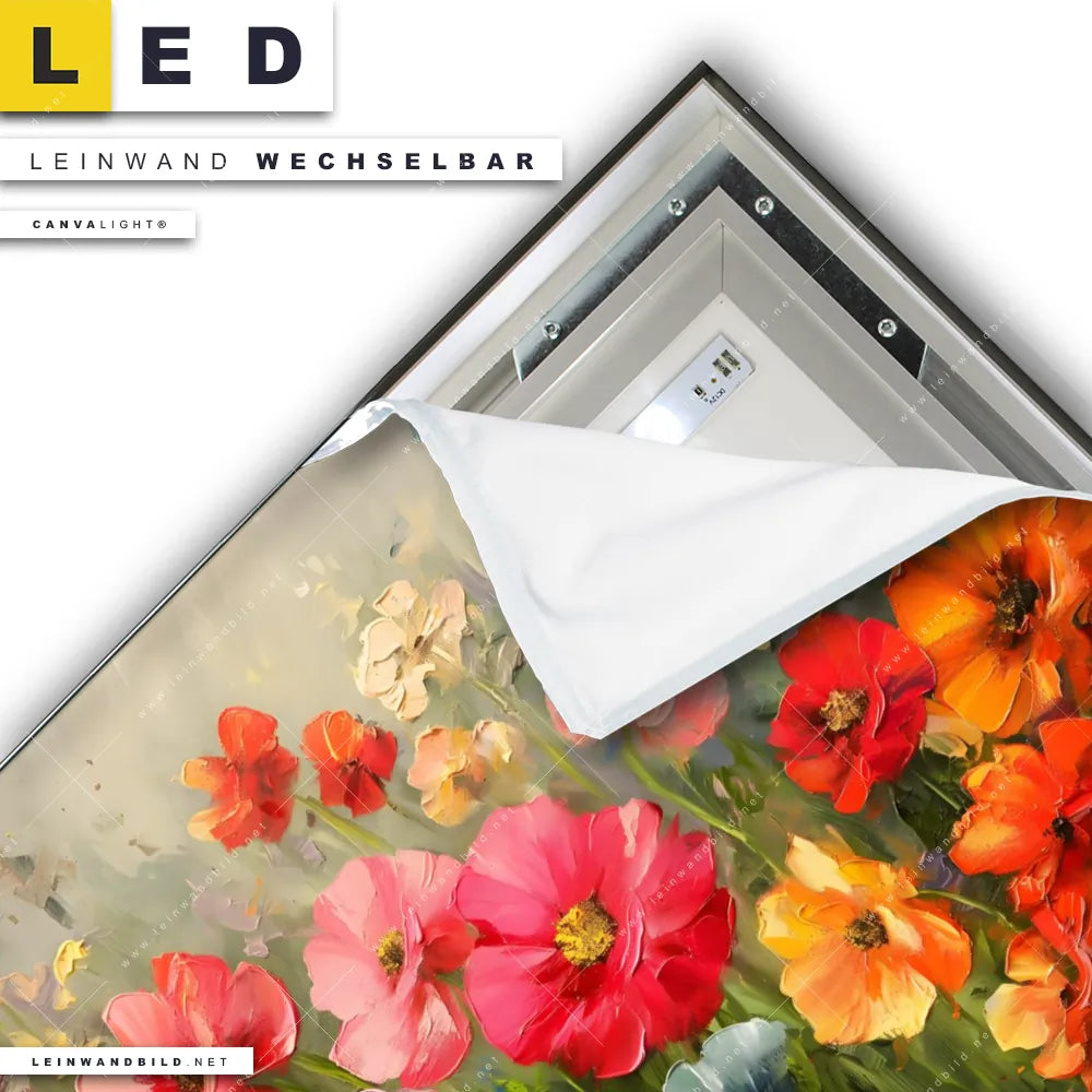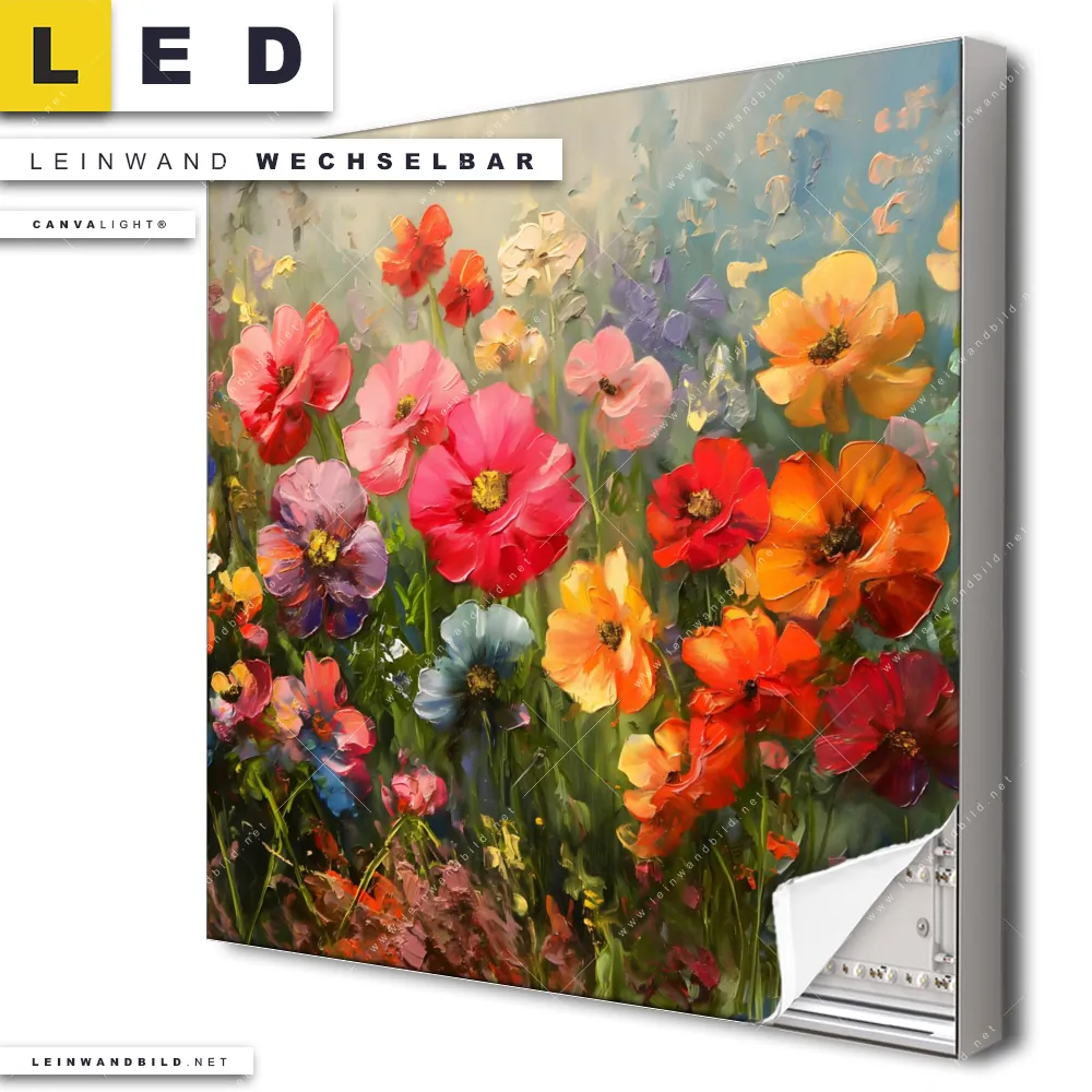 LED Leinwandbild Canvalight® TEX | Leuchtende Frühlingsblumen | Quadrat