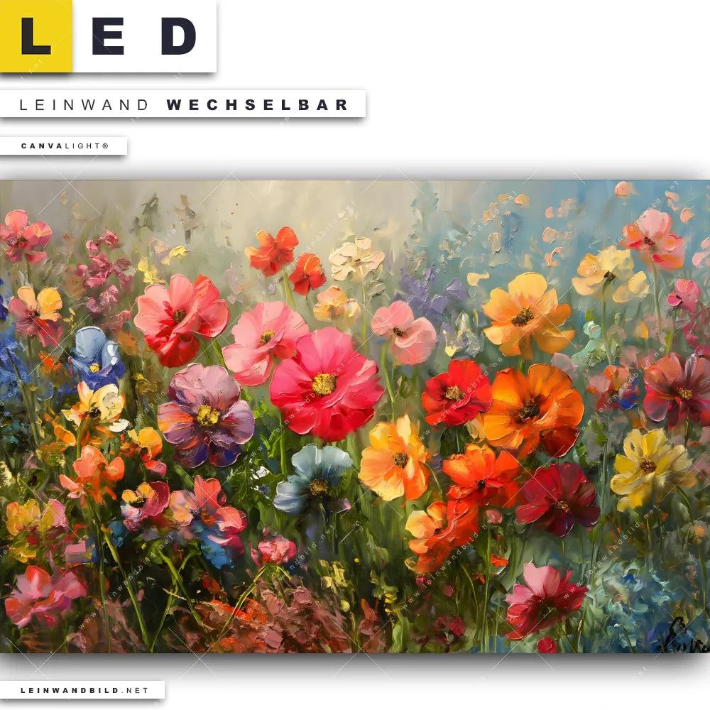 Du bist auf der Suche nach einem Blumen - Botanik LED Leinwandbild im Querformat? Begriffe wie Natur, Blüten, Blumen, Blumenwiese, Pflanze haben Dich auf der Suche nach Deinem neuen XXL LED Wandbild mit wechselbarer Leinwand inspiriert? Farben wie Blau, Orange, Grün, Gelb dürfen auf Deinem neuen breiten Leinwand-LED-Bild nicht fehlen und Leuchtbilder im Floral, Abstrakt Stil passen perfekt zu Deinem Einrichtungsstil?
