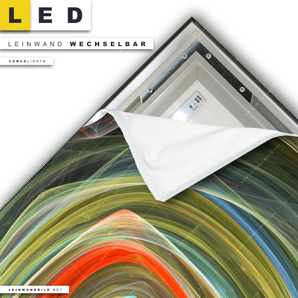 Du konfigurierst Dein individuelles LED Leinwandbild Canvalight® TEX | Lichtmalerei No. 2 | Querformat und wir produzieren es NEU für Dich. Unsere Muster - Texturen LED Bilder mit wechselbarer Textil-Leinwand sind KEINE Lagerware. Du bist Dir unsicher, welches Motiv oder Format das richtige für dein individuelles Canvalight® Leuchtbild ist, dann helfen wir dir gerne weiter und beraten dich!