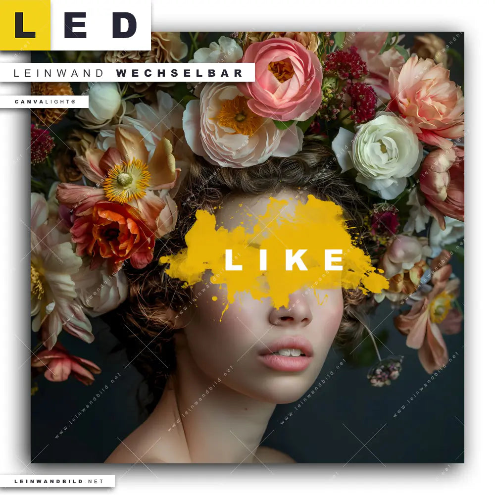 Du konfigurierst Dein individuelles LED Leinwandbild Canvalight® TEX | LIKE - Florales Porträt | Quadrat und wir produzieren es NEU für Dich. Unsere Porträts - Menschen, Blumen - Botanik LED Bilder mit wechselbarer Textil-Leinwand sind KEINE Lagerware. Du bist Dir unsicher, welches Motiv oder Format das richtige für dein individuelles Canvalight® Leuchtbild ist, dann helfen wir dir gerne weiter und beraten dich!