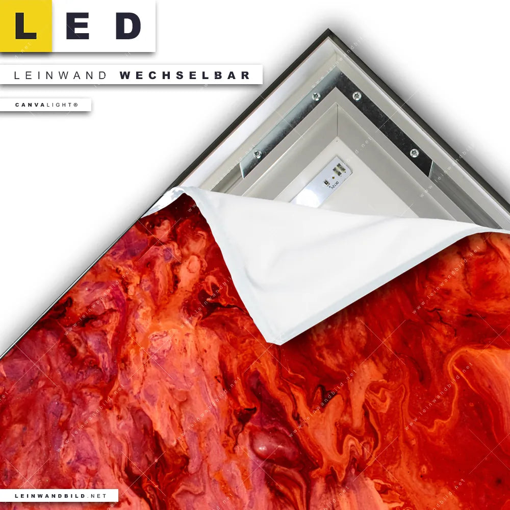 Du bist auf der Suche nach einem Muster - Texturen LED Leinwandbild im Quadratischen Format? Begriffe wie Marmor, Flüssigkeit, Acryl, flüssig, Farbe, Marmorierung, Fluid Art haben Dich auf der Suche nach Deinem neuen XXL LED Wandbild mit wechselbarer Leinwand inspiriert? Farben wie Rot dürfen auf Deinem neuen Leinwand-LED-Bild nicht fehlen und Leuchtbilder im Abstrakt, Modern Art Stil passen perfekt zu Deinem Einrichtungsstil?