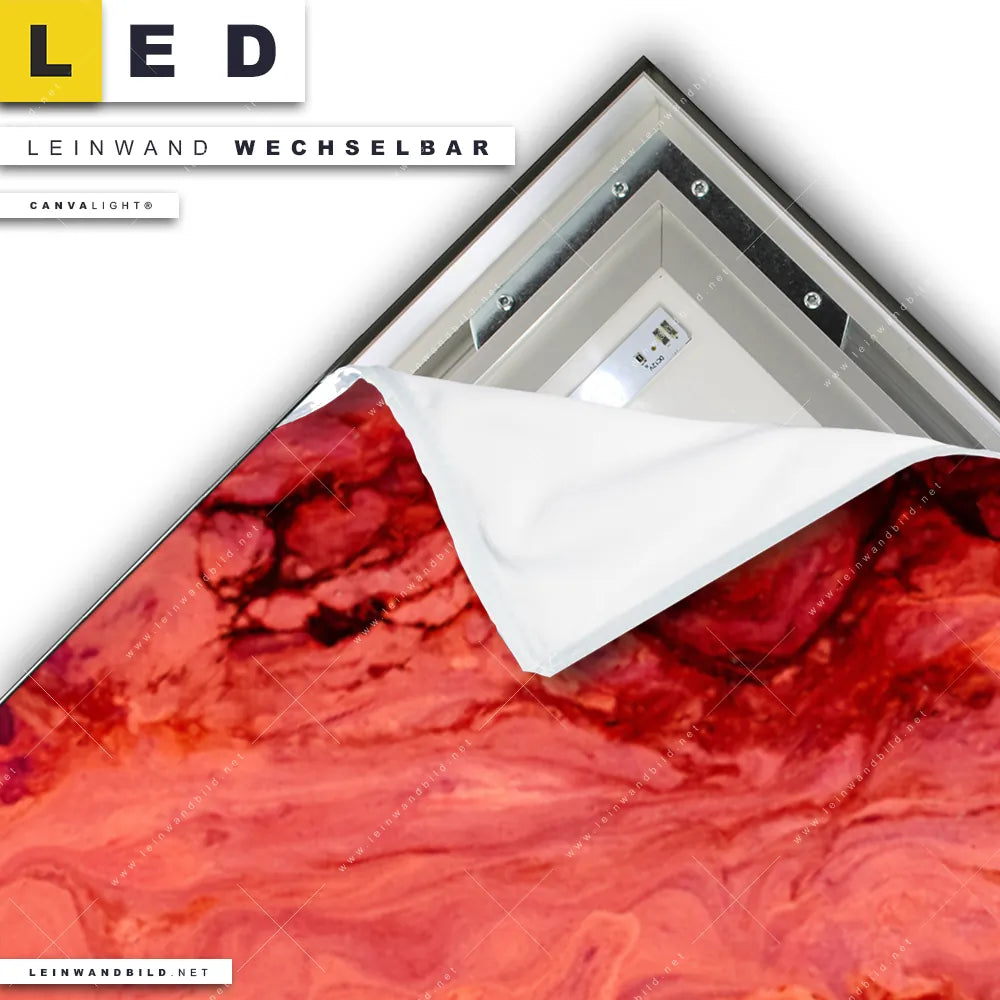 LED Leinwandbild Canvalight® TEX | Liquid Marmor rot | Schmal