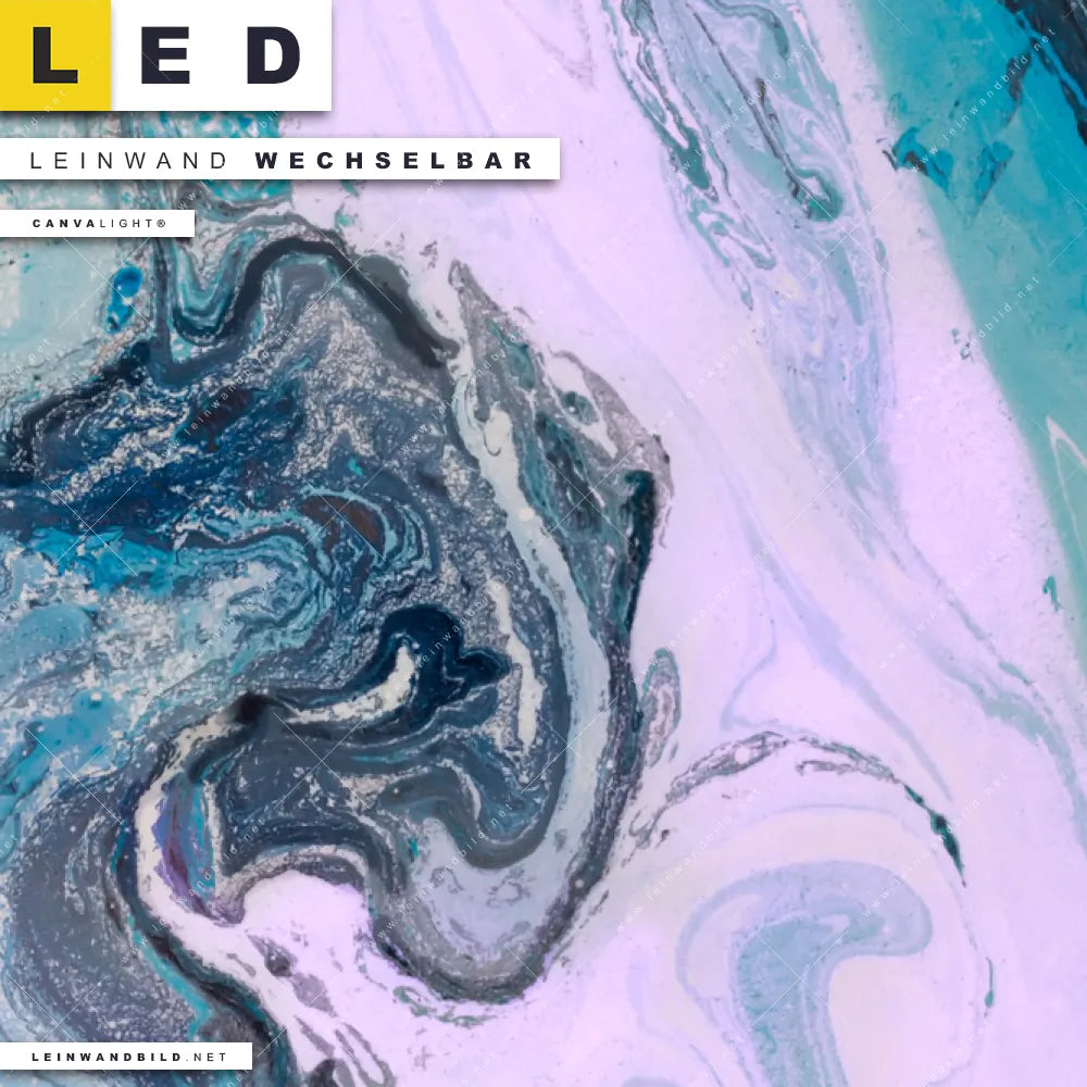 LED Leinwandbild Canvalight® TEX | Liquid Marmor Türkis Flieder | Schmal