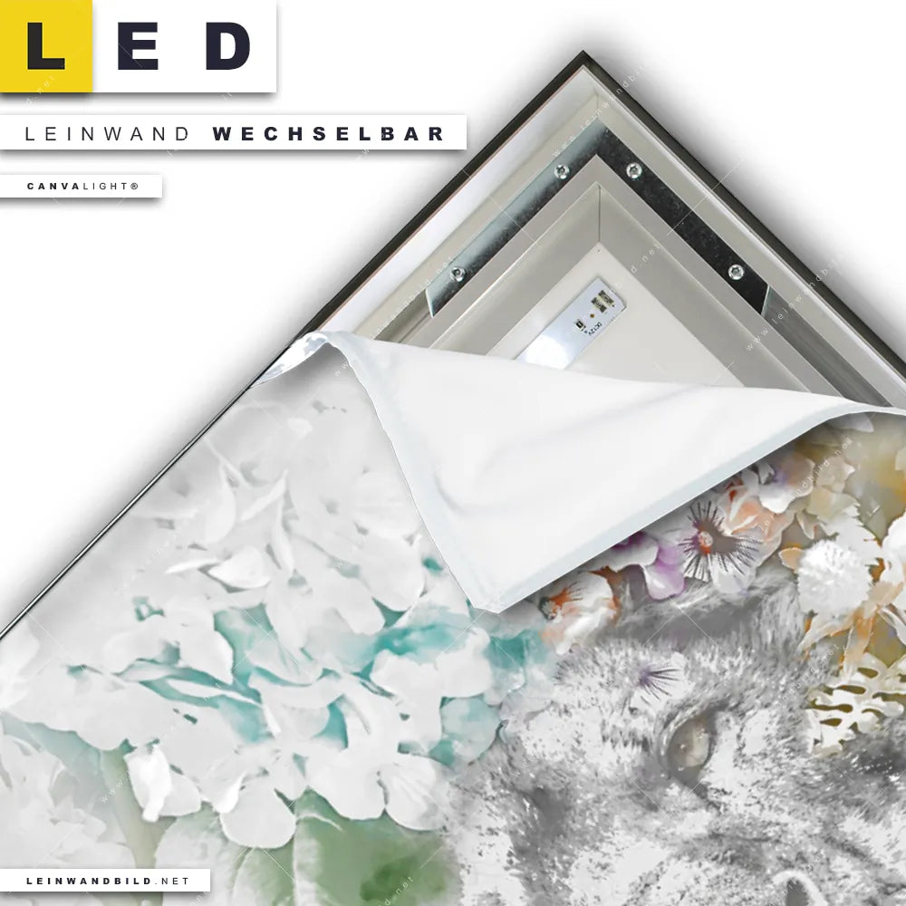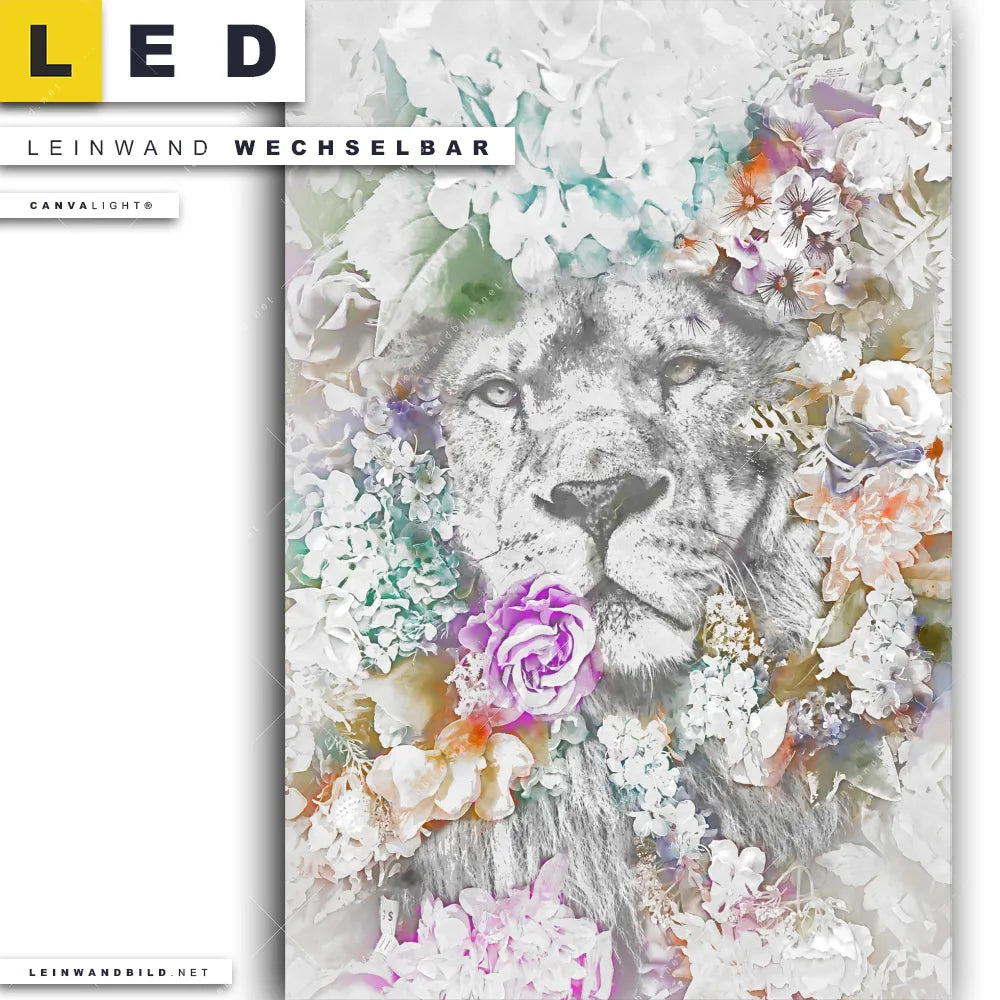 LED Leinwandbild Canvalight® TEX | Löwe & Blumen | Hochformat