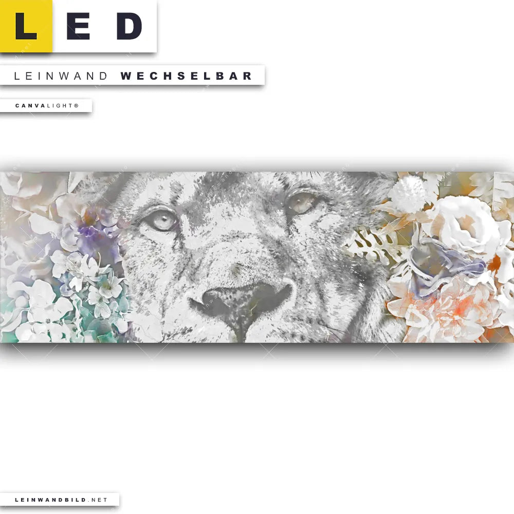 LED Leinwandbild Canvalight® TEX | Löwe & Blumen | Panorama