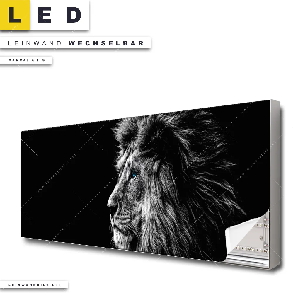Du bist auf der Suche nach einem Tierwelt LED Leinwandbild im Panorama-Format? Begriffe wie Raubkatze, Löwe, Afrika, wild, Dschungel, Safari, Lion haben Dich auf der Suche nach Deinem neuen XXL LED Wandbild mit wechselbarer Leinwand inspiriert? Farben wie Weiss, Schwarz dürfen auf Deinem neuen extra breiten Leinwand-LED-Bild nicht fehlen und Leuchtbilder im Natürlich - Realistisch, Schwarz - Weiss Stil passen perfekt zu Deinem Einrichtungsstil?