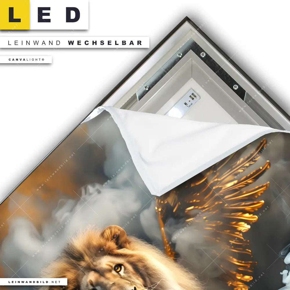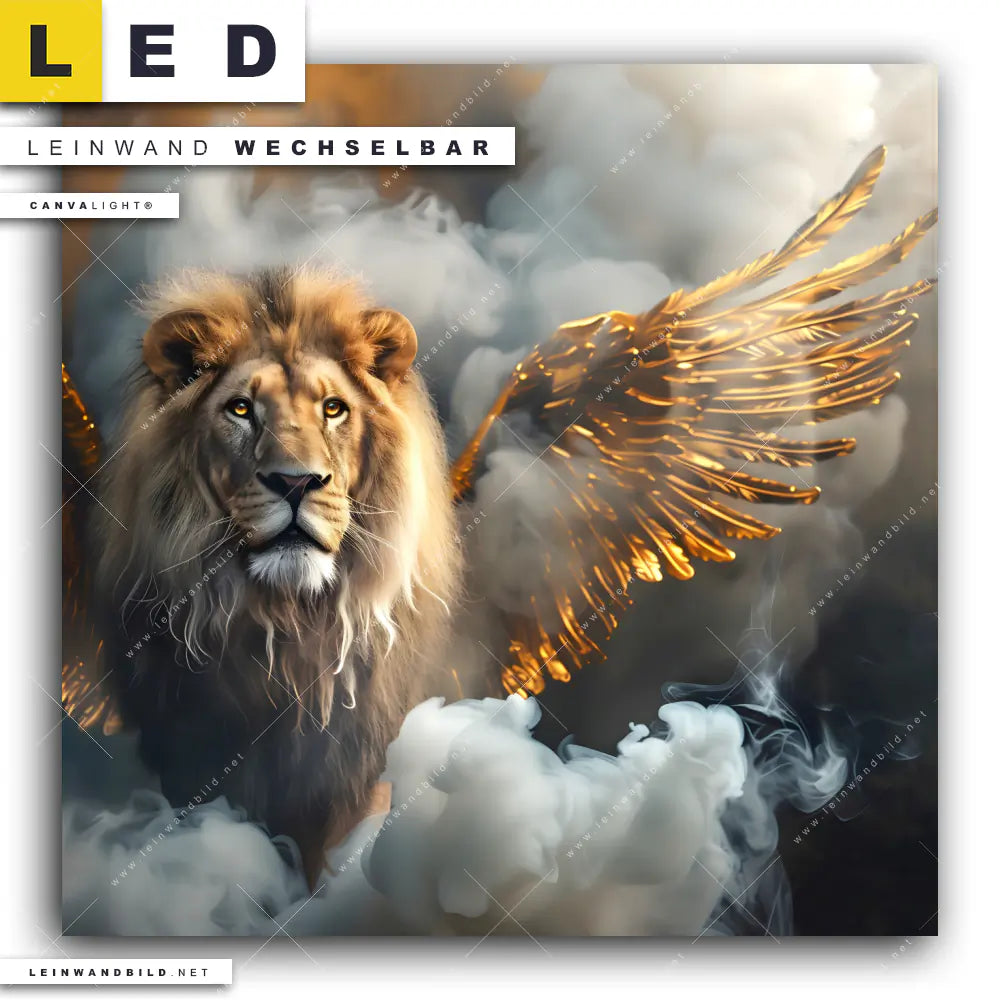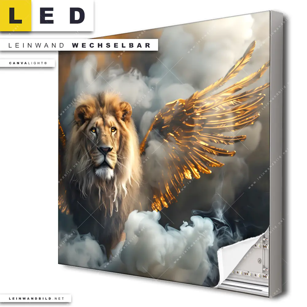 LED Leinwandbild Canvalight® TEX | Löwe mit goldenen Flügeln | Quadrat