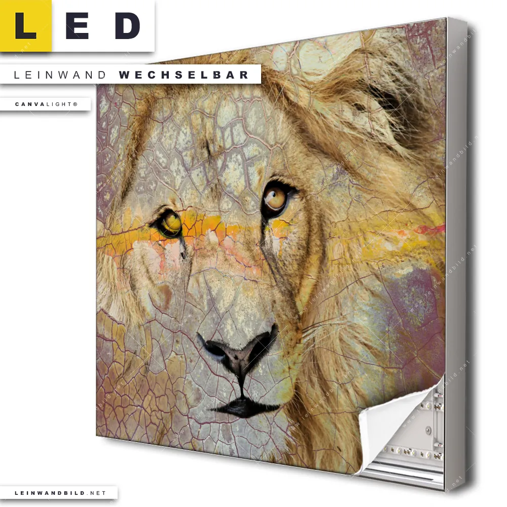 Du bist auf der Suche nach einem Tierwelt LED Leinwandbild im Quadratischen Format? Begriffe wie Tier, Grunge, Streetart, modern, Afrika, Löwe, Lion, Raubkatze haben Dich auf der Suche nach Deinem neuen XXL LED Wandbild mit wechselbarer Leinwand inspiriert? Farben wie Beige, Orange dürfen auf Deinem neuen Leinwand-LED-Bild nicht fehlen und Leuchtbilder im Grunge, Mixed Media, Modern Art, Retro - Vintage Stil passen perfekt zu Deinem Einrichtungsstil?