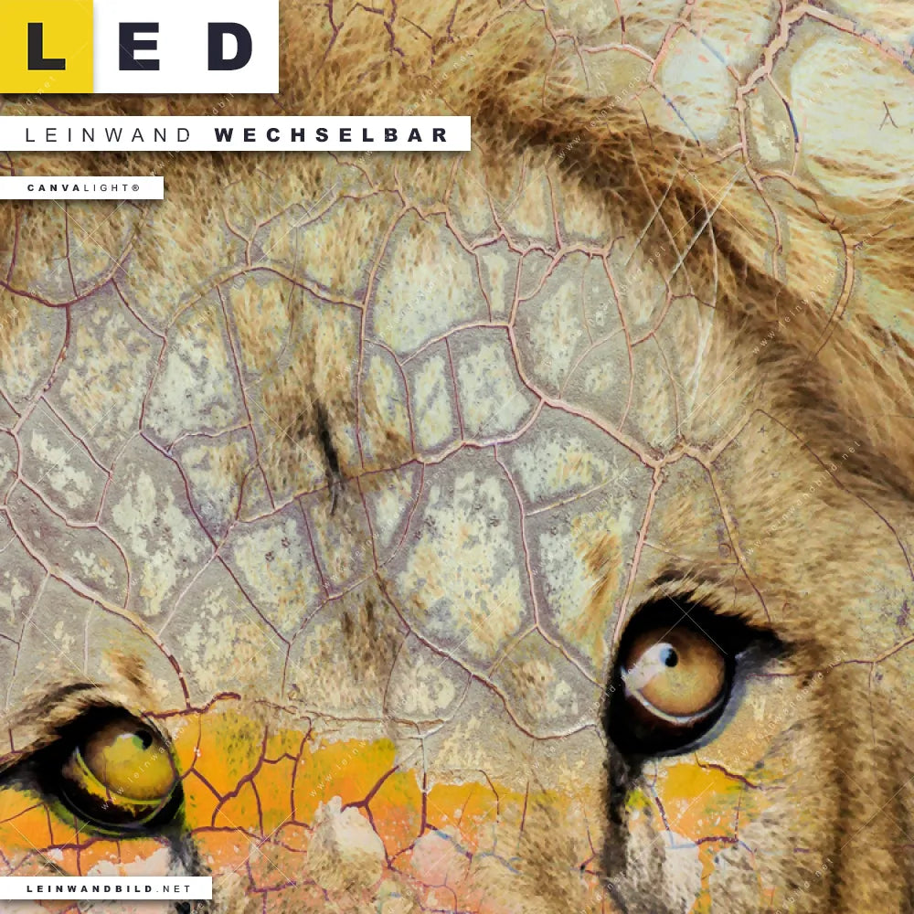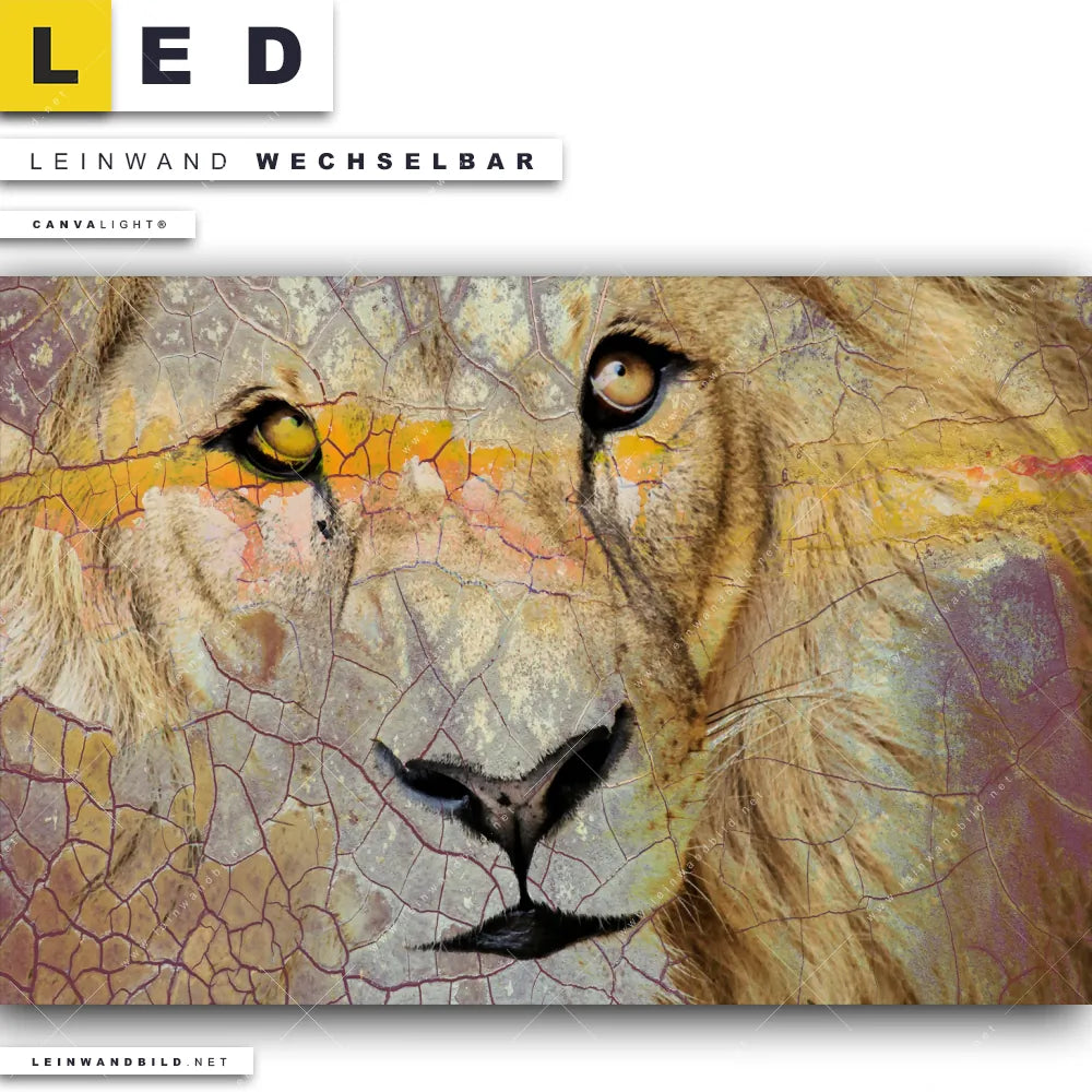 Du bist auf der Suche nach einem Tierwelt LED Leinwandbild im Querformat? Begriffe wie Tier, Grunge, Streetart, modern, Afrika, Löwe, Lion, Raubkatze haben Dich auf der Suche nach Deinem neuen XXL LED Wandbild mit wechselbarer Leinwand inspiriert? Farben wie Beige, Orange dürfen auf Deinem neuen breiten Leinwand-LED-Bild nicht fehlen und Leuchtbilder im Grunge, Mixed Media, Modern Art, Retro - Vintage Stil passen perfekt zu Deinem Einrichtungsstil?