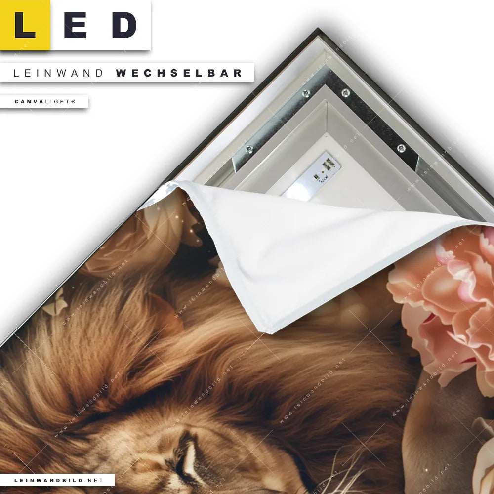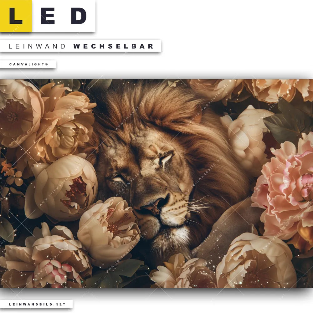 Du bist auf der Suche nach einem Tierwelt, Blumen - Botanik LED Leinwandbild im Querformat? Begriffe wie Pflanze, Natur, Nahaufnahme, Raubkatze, Löwe, Blumen, Blüten haben Dich auf der Suche nach Deinem neuen XXL LED Wandbild mit wechselbarer Leinwand inspiriert? Farben wie Braun, Beige, Rosa dürfen auf Deinem neuen breiten Leinwand-LED-Bild nicht fehlen und Leuchtbilder im Floral, Modern Art Stil passen perfekt zu Deinem Einrichtungsstil?