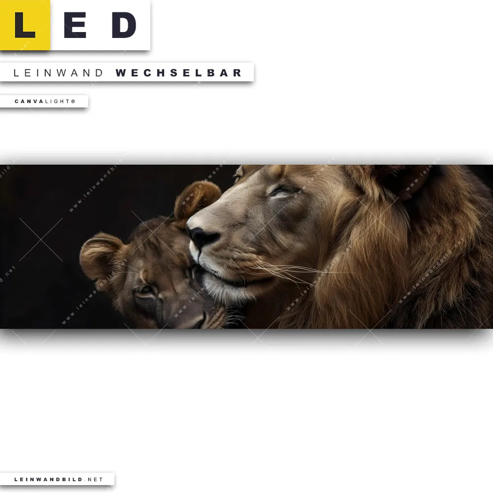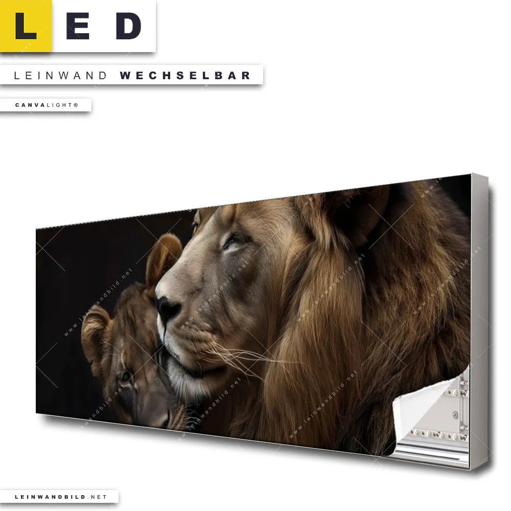 LED Leinwandbild Canvalight® TEX | Löwen - Stärke und Zärtlichkeit | Panorama