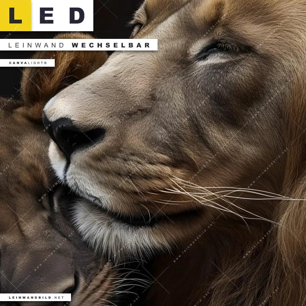 Du konfigurierst Dein individuelles LED Leinwandbild Canvalight® TEX | Löwen - Stärke und Zärtlichkeit | Panorama und wir produzieren es NEU für Dich. Unsere Tierwelt LED Bilder mit wechselbarer Textil-Leinwand sind KEINE Lagerware. Du bist Dir unsicher, welches Motiv oder Format das richtige für dein individuelles Canvalight® Leuchtbild ist, dann helfen wir dir gerne weiter und beraten dich!