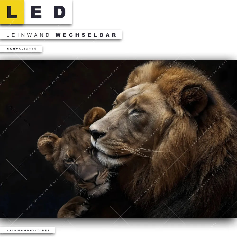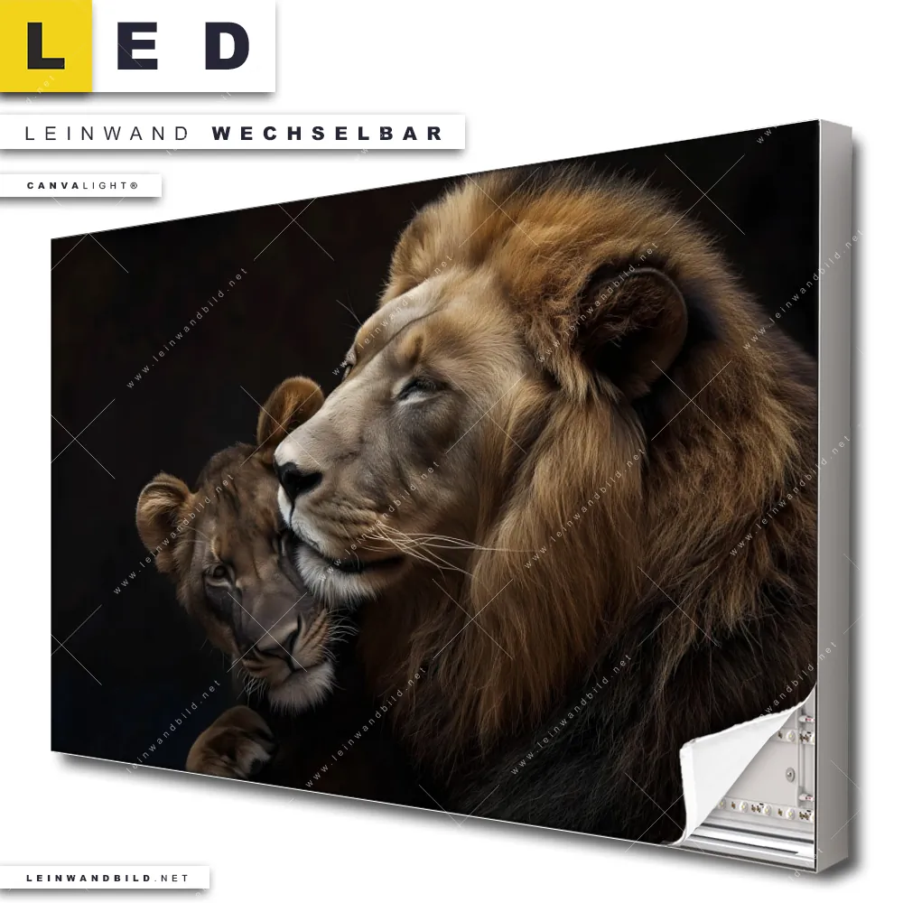 Du konfigurierst Dein individuelles LED Leinwandbild Canvalight® TEX | Löwen - Stärke und Zärtlichkeit | Querformat und wir produzieren es NEU für Dich. Unsere Tierwelt LED Bilder mit wechselbarer Textil-Leinwand sind KEINE Lagerware. Du bist Dir unsicher, welches Motiv oder Format das richtige für dein individuelles Canvalight® Leuchtbild ist, dann helfen wir dir gerne weiter und beraten dich!