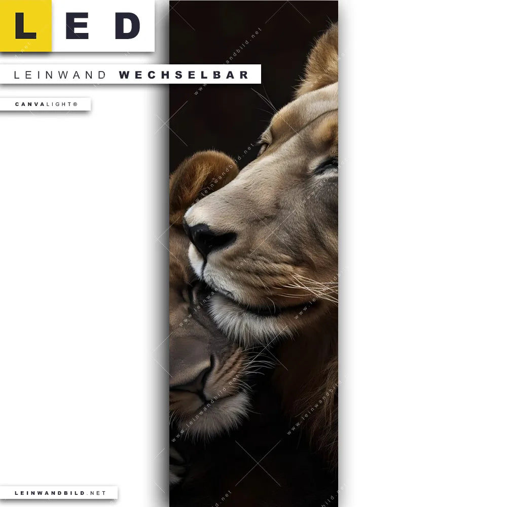 LED Leinwandbild Canvalight® TEX | Löwen - Stärke und Zärtlichkeit | Schmal