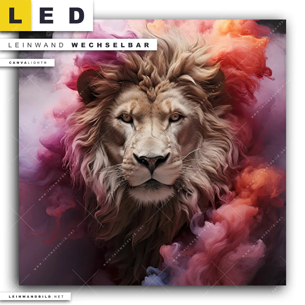 Du bist auf der Suche nach einem Tierwelt LED Leinwandbild im Quadratischen Format? Begriffe wie Raubkatze, Löwe, Afrika, Dschungel, Lion, Rauch, Qualm, Wolken, Farbexplosion, Porträt haben Dich auf der Suche nach Deinem neuen XXL LED Wandbild mit wechselbarer Leinwand inspiriert? Farben wie Beige, Pink, Rot dürfen auf Deinem neuen Leinwand-LED-Bild nicht fehlen und Leuchtbilder im Modern Art, Abstrakt Stil passen perfekt zu Deinem Einrichtungsstil?