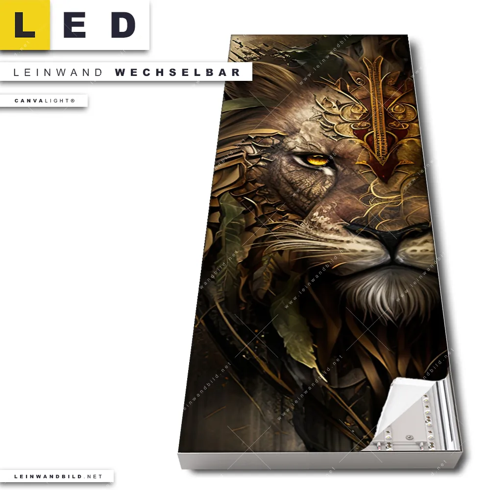 LED Leinwandbild Canvalight® TEX | Löwenkopf mit Krone | Schmal