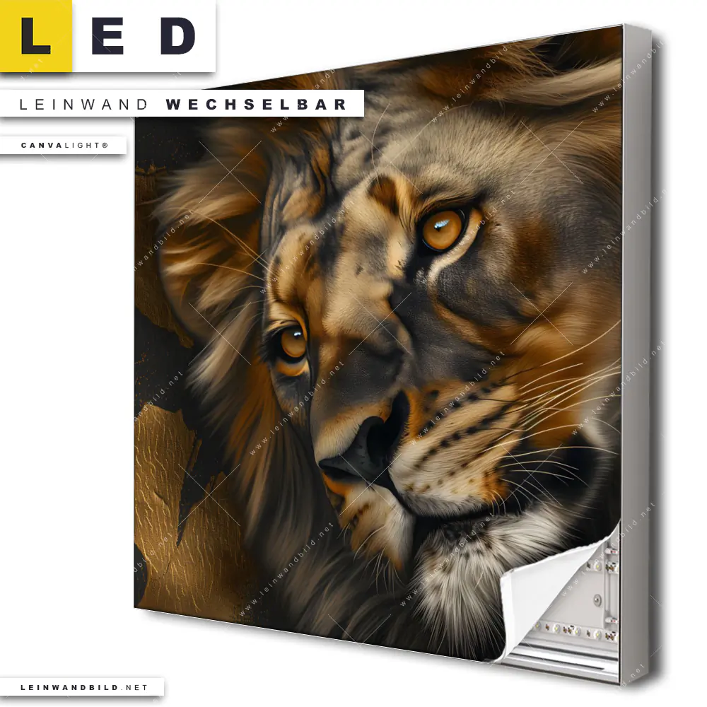LED Leinwandbild Canvalight® TEX | Löwenportrait: Kraft und Eleganz | Quadrat