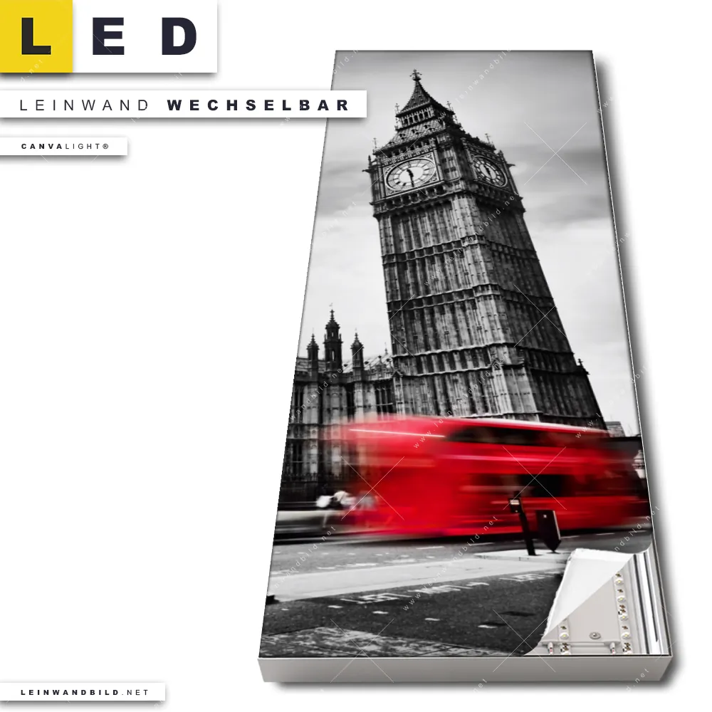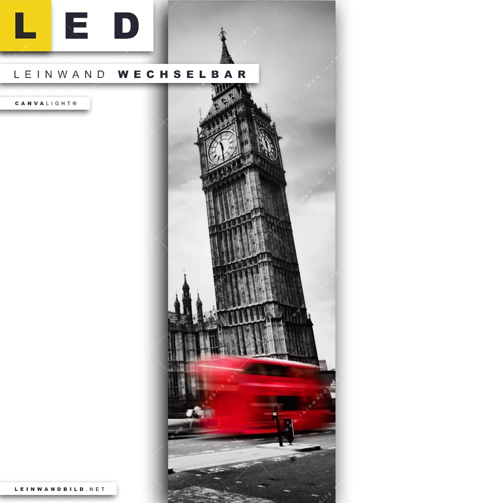 Du bist auf der Suche nach einem Städte - Skylines LED Leinwandbild im Schmalen Format? Begriffe wie Sehenswürdigkeiten, Schwarzweiss, London England, Bus, Big Ben, Großbritannien, Westminster haben Dich auf der Suche nach Deinem neuen XXL LED Wandbild mit wechselbarer Leinwand inspiriert? Farben wie Weiss, Schwarz, Rot dürfen auf Deinem neuen Leinwand-LED-Bild im Panorama-Hochformat nicht fehlen und Leuchtbilder im Modern Art, Mixed Media Stil passen perfekt zu Deinem Einrichtungsstil?