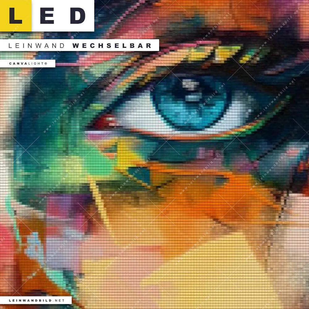 Du bist auf der Suche nach einem Porträts - Menschen LED Leinwandbild im Quadratischen Format? Begriffe wie Frau, Portrait, Gesicht, Kunst, Mädchen, Dame, Schönheit, Farbe, Kopf haben Dich auf der Suche nach Deinem neuen XXL LED Wandbild mit wechselbarer Leinwand inspiriert? Farben wie Bunt, Orange, Pink, Beige dürfen auf Deinem neuen Leinwand-LED-Bild nicht fehlen und Leuchtbilder im Abstrakt, Geometrisch, Pop Art Stil passen perfekt zu Deinem Einrichtungsstil?