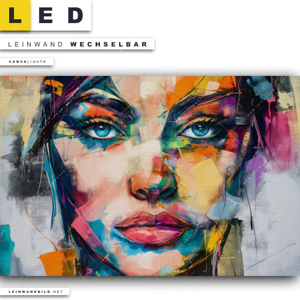 Du bist auf der Suche nach einem Porträts - Menschen LED Leinwandbild im Querformat? Begriffe wie Frau, Portrait, Gesicht, Kunst, Mädchen, Dame, Schönheit, Farbe, Kopf haben Dich auf der Suche nach Deinem neuen XXL LED Wandbild mit wechselbarer Leinwand inspiriert? Farben wie Bunt, Orange, Pink, Beige dürfen auf Deinem neuen breiten Leinwand-LED-Bild nicht fehlen und Leuchtbilder im Abstrakt, Geometrisch, Pop Art Stil passen perfekt zu Deinem Einrichtungsstil?