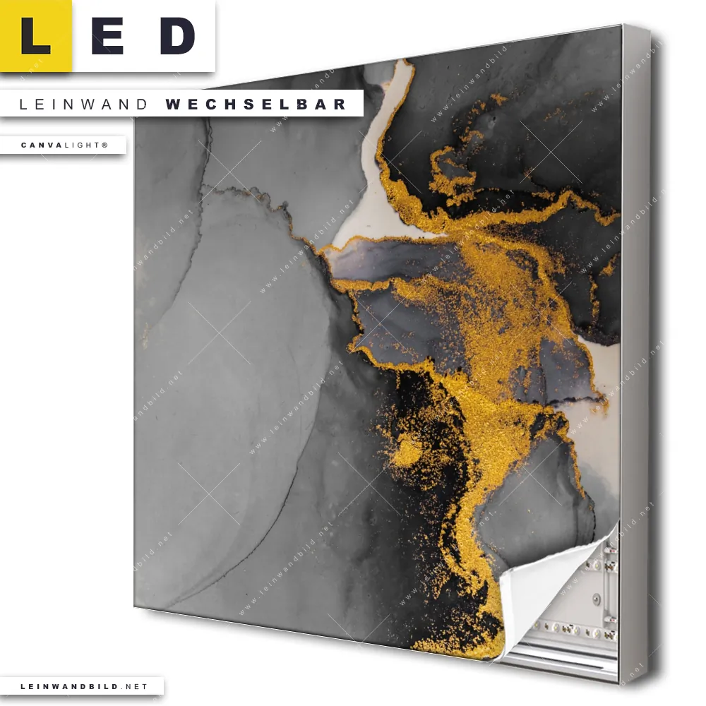 Du bist auf der Suche nach einem Muster - Texturen LED Leinwandbild im Quadratischen Format? Begriffe wie Flüssigkeit, Acryl, flüssig, Farbe, Marmorierung, Fluid Art haben Dich auf der Suche nach Deinem neuen XXL LED Wandbild mit wechselbarer Leinwand inspiriert? Farben wie Schwarz, Gold, Weiss dürfen auf Deinem neuen Leinwand-LED-Bild nicht fehlen und Leuchtbilder im Abstrakt, Modern Art Stil passen perfekt zu Deinem Einrichtungsstil?