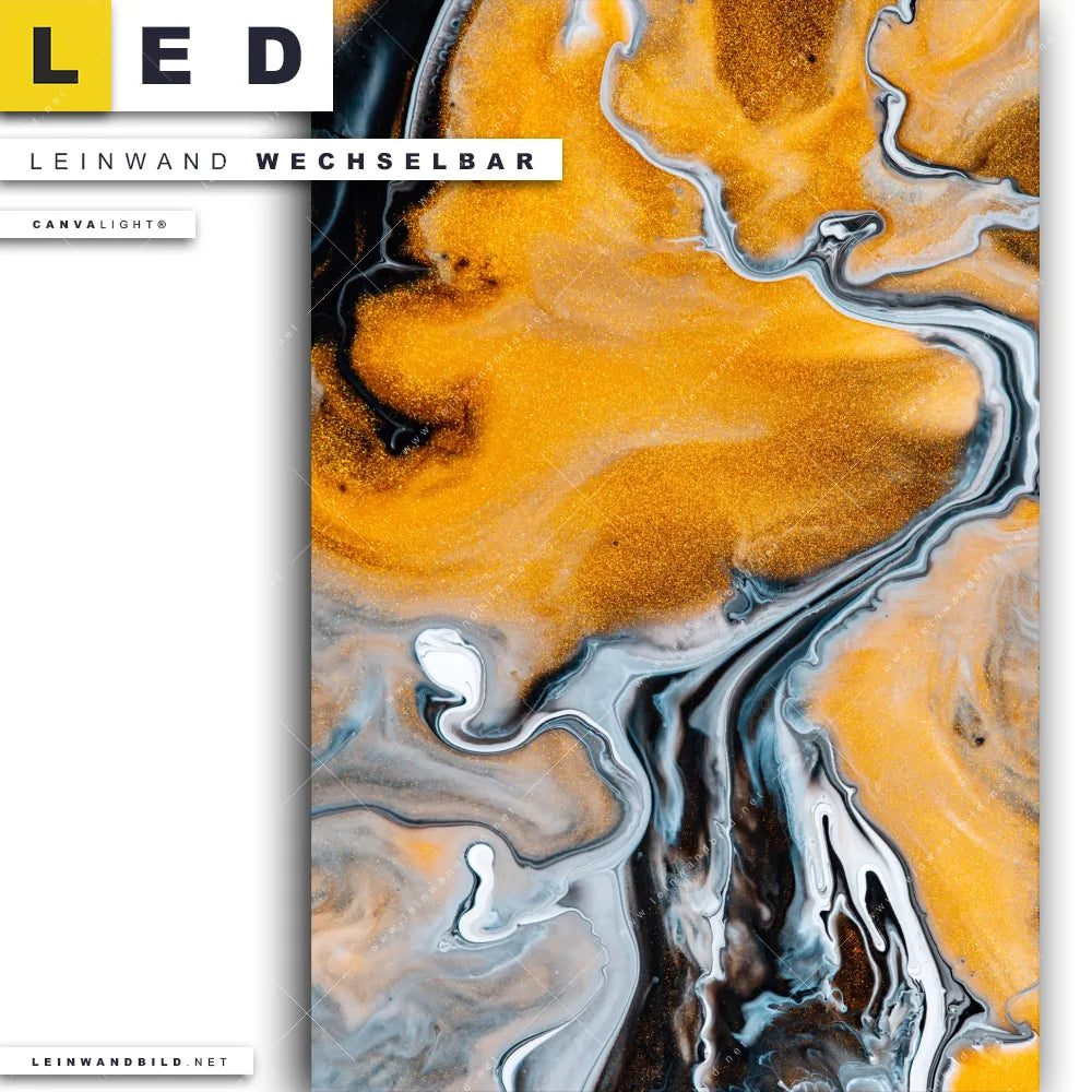 Du bist auf der Suche nach einem Muster - Texturen LED Leinwandbild im Hochformat? Begriffe wie Flüssigkeit, Acryl, flüssig, Farbe, Marmorierung, Fluid Art haben Dich auf der Suche nach Deinem neuen XXL LED Wandbild mit wechselbarer Leinwand inspiriert? Farben wie Schwarz, Orange, Gold, Weiss dürfen auf Deinem neuen Leinwand-LED-Bild nicht fehlen und Leuchtbilder im Abstrakt, Modern Art Stil passen perfekt zu Deinem Einrichtungsstil?