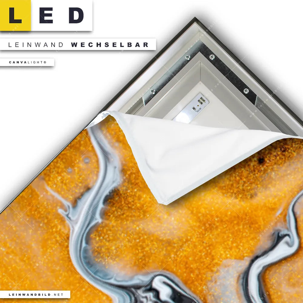 Du konfigurierst Dein individuelles LED Leinwandbild Canvalight® TEX | Luxury Abstract Fluid Art No. 4 | Panorama und wir produzieren es NEU für Dich. Unsere Muster - Texturen LED Bilder mit wechselbarer Textil-Leinwand sind KEINE Lagerware. Du bist Dir unsicher, welches Motiv oder Format das richtige für dein individuelles Canvalight® Leuchtbild ist, dann helfen wir dir gerne weiter und beraten dich!