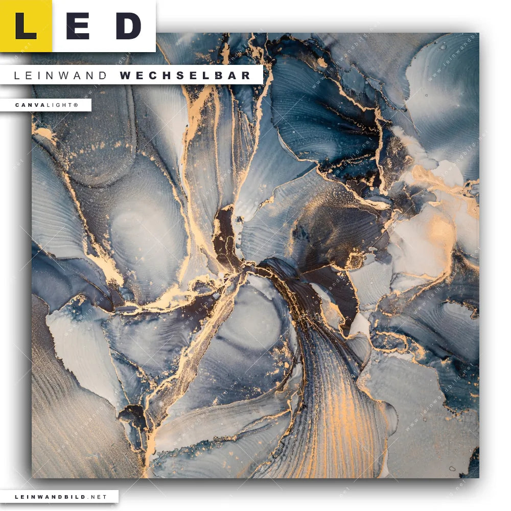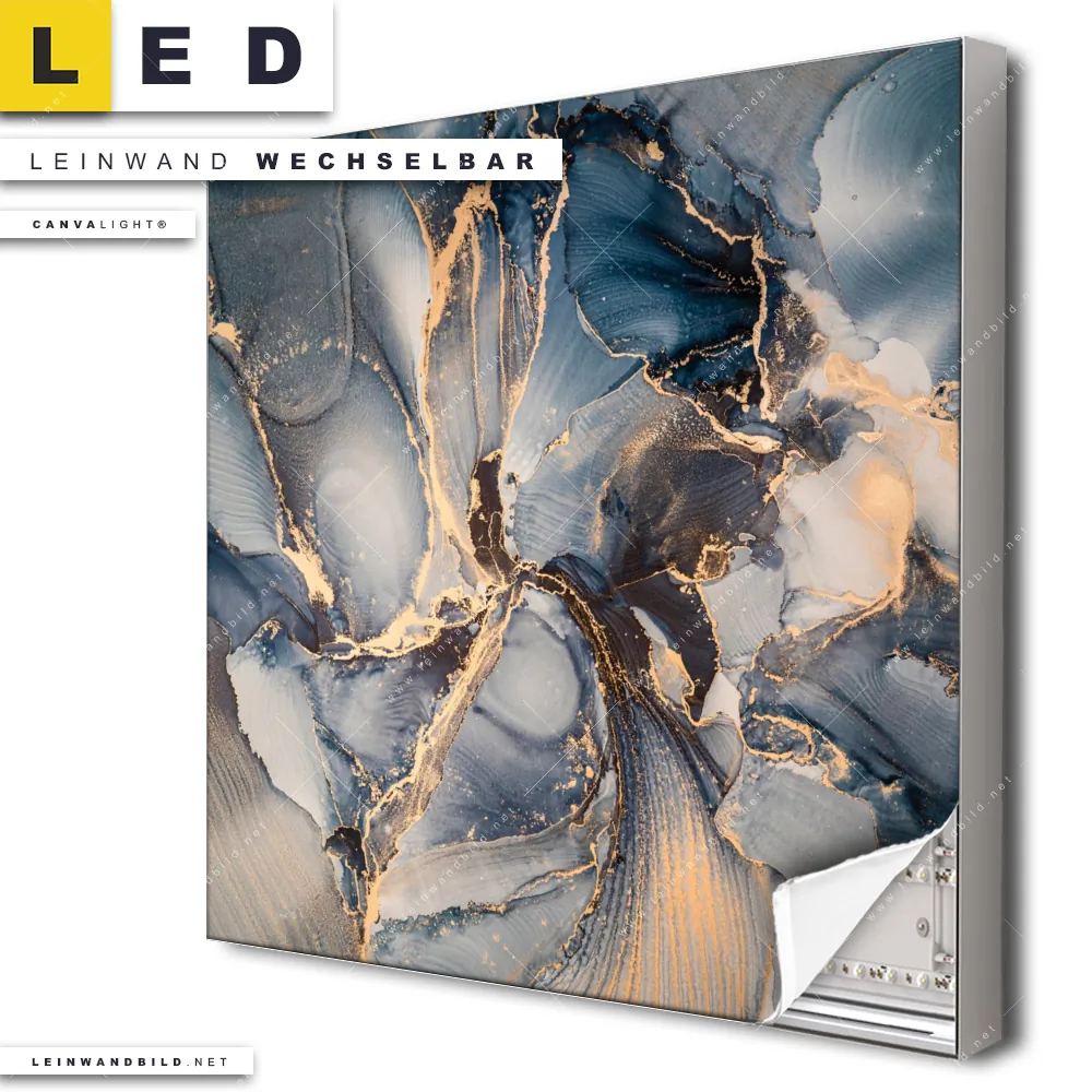 Du bist auf der Suche nach einem Muster - Texturen LED Leinwandbild im Quadratischen Format? Begriffe wie Flüssigkeit, Acryl, flüssig, Farbe, Marmorierung, Tinte, Alkohol, Fluid Art haben Dich auf der Suche nach Deinem neuen XXL LED Wandbild mit wechselbarer Leinwand inspiriert? Farben wie Gold, Weiss, Blau dürfen auf Deinem neuen Leinwand-LED-Bild nicht fehlen und Leuchtbilder im Abstrakt, Modern Art Stil passen perfekt zu Deinem Einrichtungsstil?