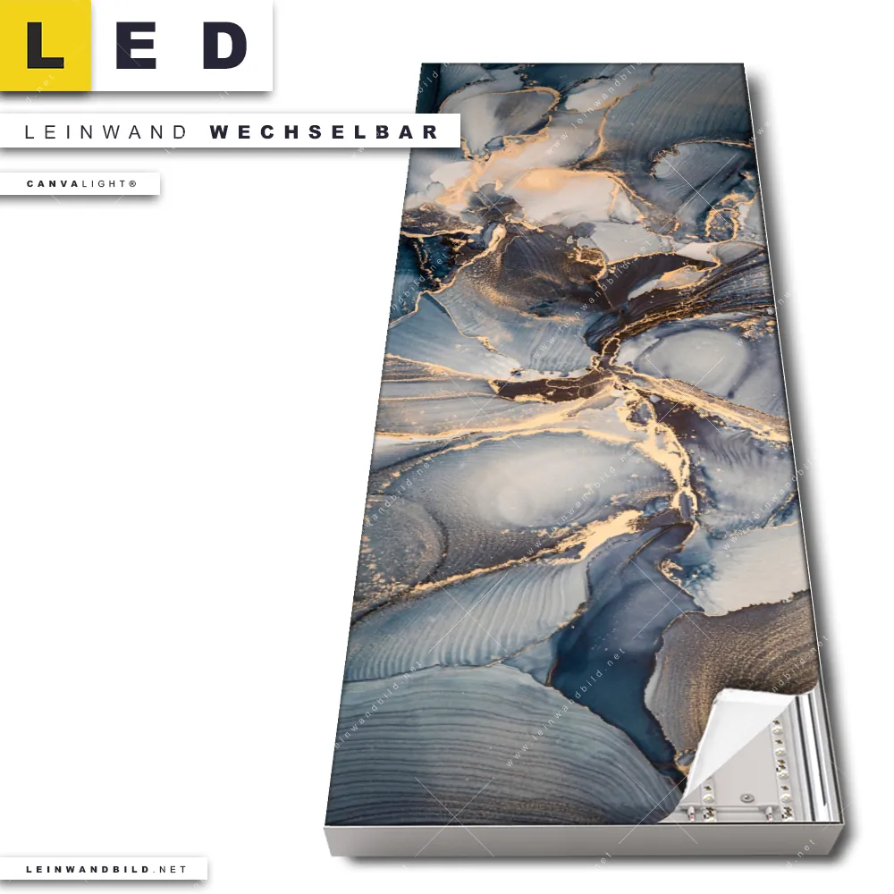 Du bist auf der Suche nach einem Muster - Texturen LED Leinwandbild im Schmalen Format? Begriffe wie Flüssigkeit, Acryl, flüssig, Farbe, Marmorierung, Tinte, Alkohol, Fluid Art haben Dich auf der Suche nach Deinem neuen XXL LED Wandbild mit wechselbarer Leinwand inspiriert? Farben wie Gold, Weiss, Blau dürfen auf Deinem neuen Leinwand-LED-Bild im Panorama-Hochformat nicht fehlen und Leuchtbilder im Abstrakt, Modern Art Stil passen perfekt zu Deinem Einrichtungsstil?