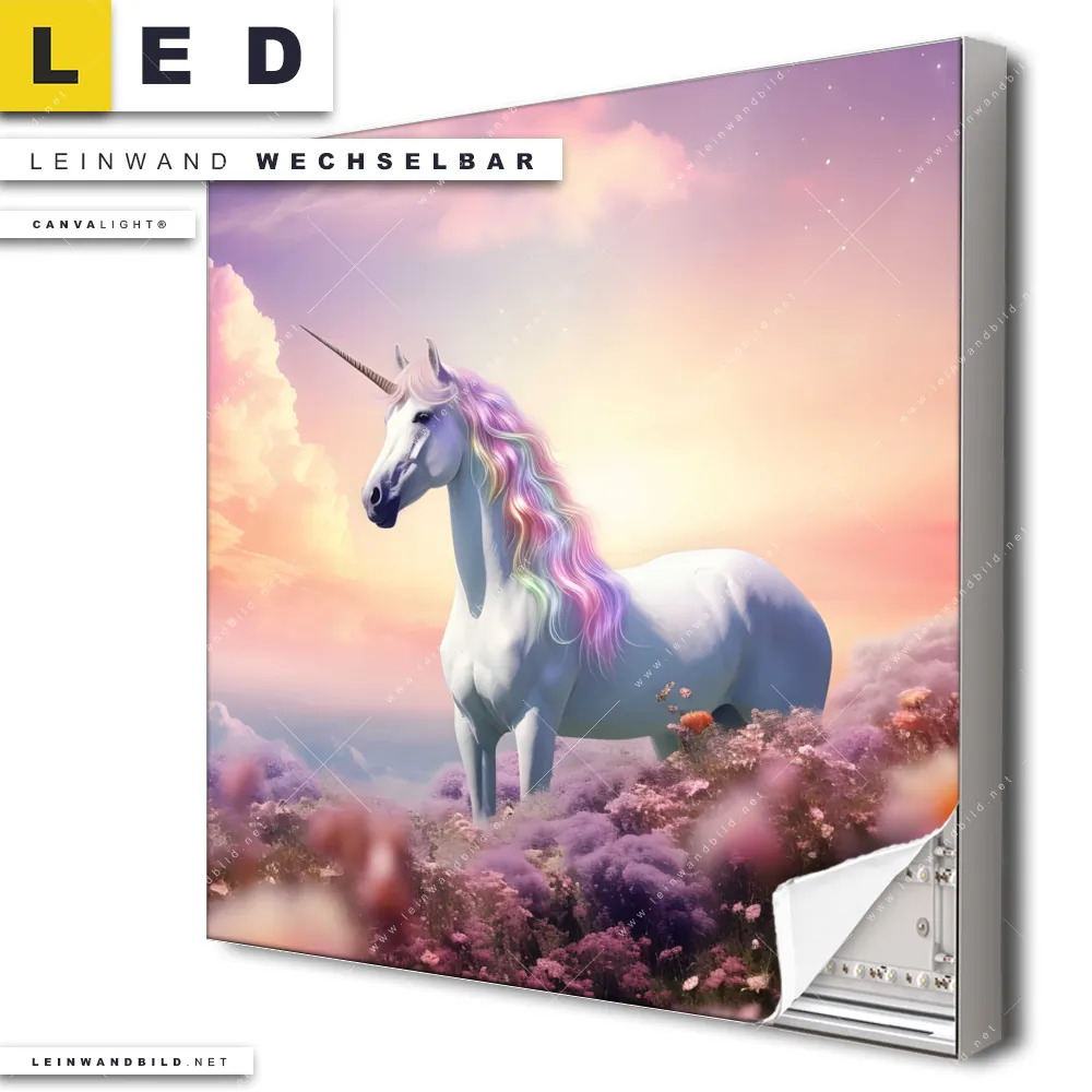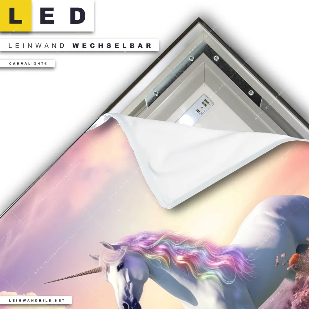 Du konfigurierst Dein individuelles LED Leinwandbild Canvalight® TEX | Magic Einhorn | Quadrat und wir produzieren es NEU für Dich. Unsere Tierwelt LED Bilder mit wechselbarer Textil-Leinwand sind KEINE Lagerware. Du bist Dir unsicher, welches Motiv oder Format das richtige für dein individuelles Canvalight® Leuchtbild ist, dann helfen wir dir gerne weiter und beraten dich!