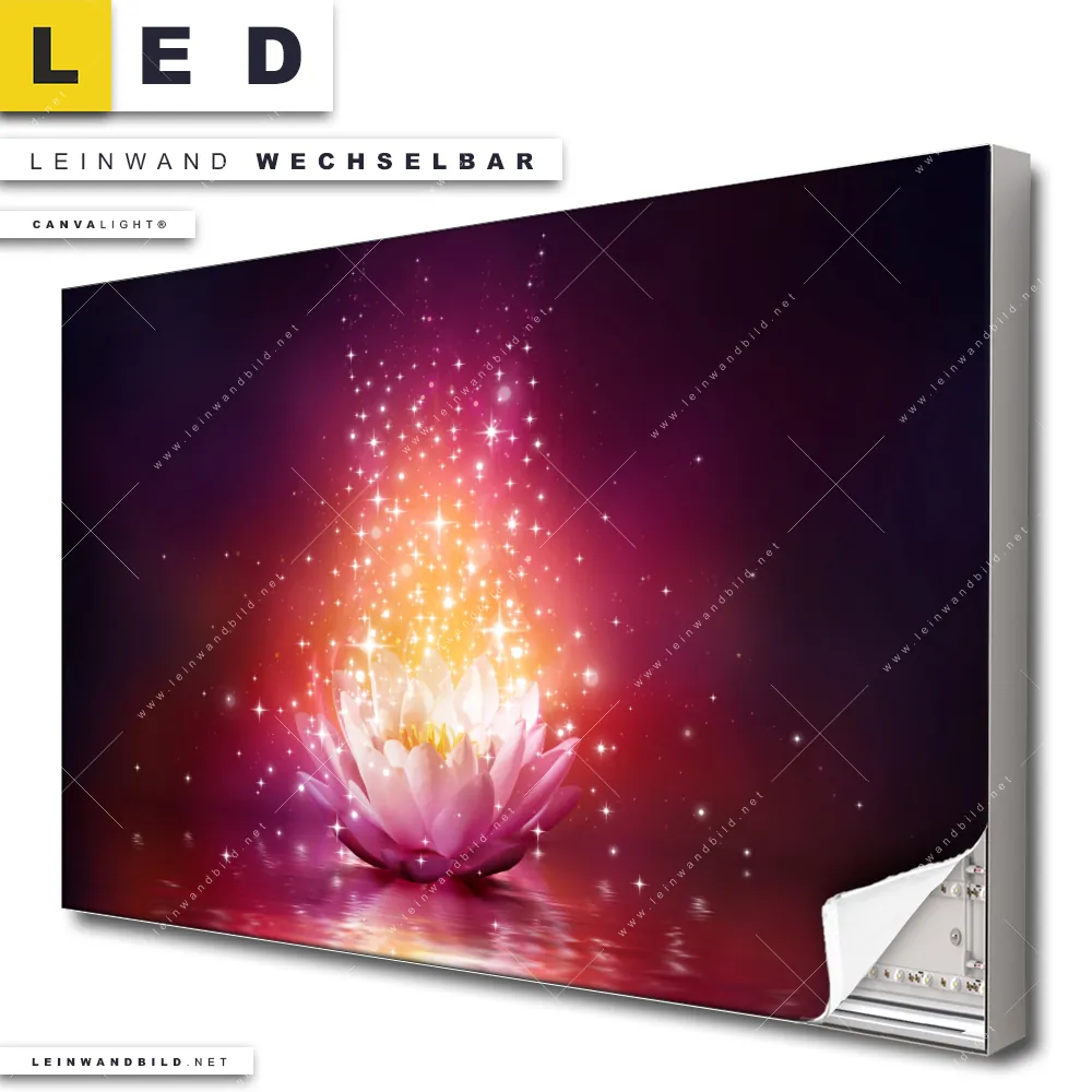 Du konfigurierst Dein individuelles LED Leinwandbild Canvalight® TEX | Magie Blume | Querformat und wir produzieren es NEU für Dich. Unsere Blumen - Botanik LED Bilder mit wechselbarer Textil-Leinwand sind KEINE Lagerware. Du bist Dir unsicher, welches Motiv oder Format das richtige für dein individuelles Canvalight® Leuchtbild ist, dann helfen wir dir gerne weiter und beraten dich!
