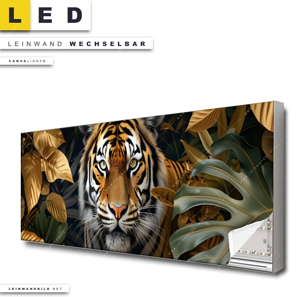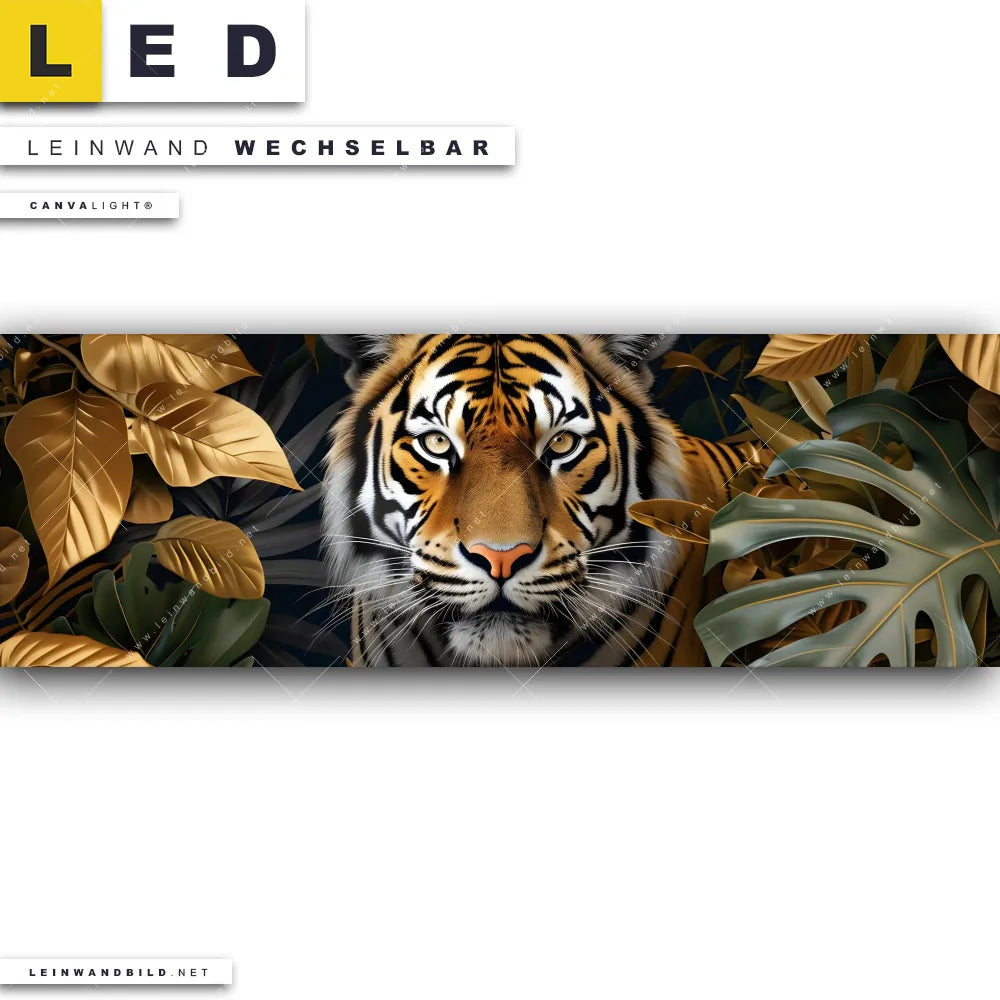 LED Leinwandbild Canvalight® TEX | Majestätischer Tiger im Dschungel | Panorama