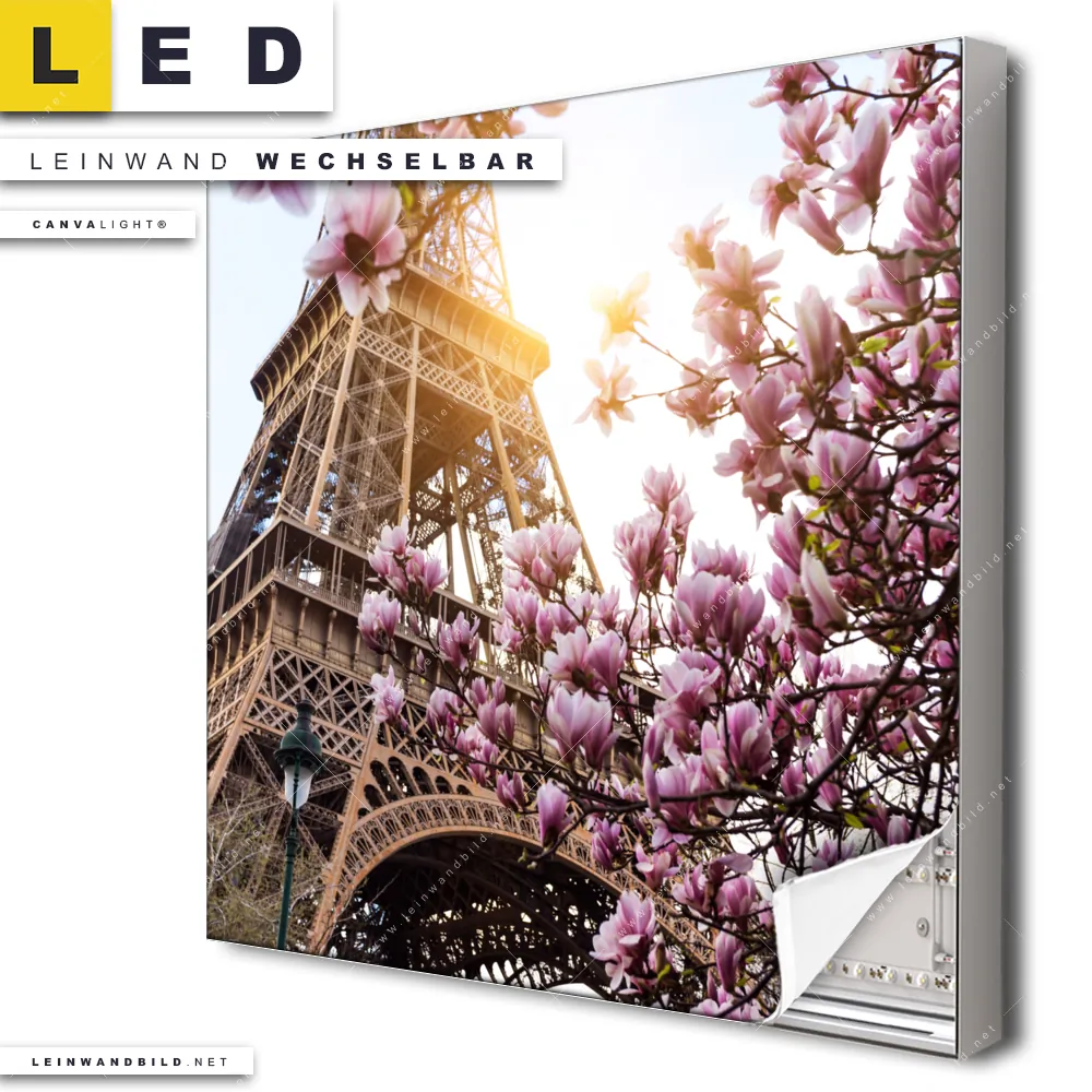 Du bist auf der Suche nach einem Architektur - Gebäude, Städte - Skylines LED Leinwandbild im Quadratischen Format? Begriffe wie Blumen | Botanik, Pflanze, Natur, Blüte, Nahaufnahme, Mangnolie, Paris, Frankreich, Eifelturm, romantisch, Reisen haben Dich auf der Suche nach Deinem neuen XXL LED Wandbild mit wechselbarer Leinwand inspiriert? Farben wie Rosa, Gelb dürfen auf Deinem neuen Leinwand-LED-Bild nicht fehlen und Leuchtbilder im Natürlich - Realistisch Stil passen perfekt zu Deinem Einrichtungsstil?