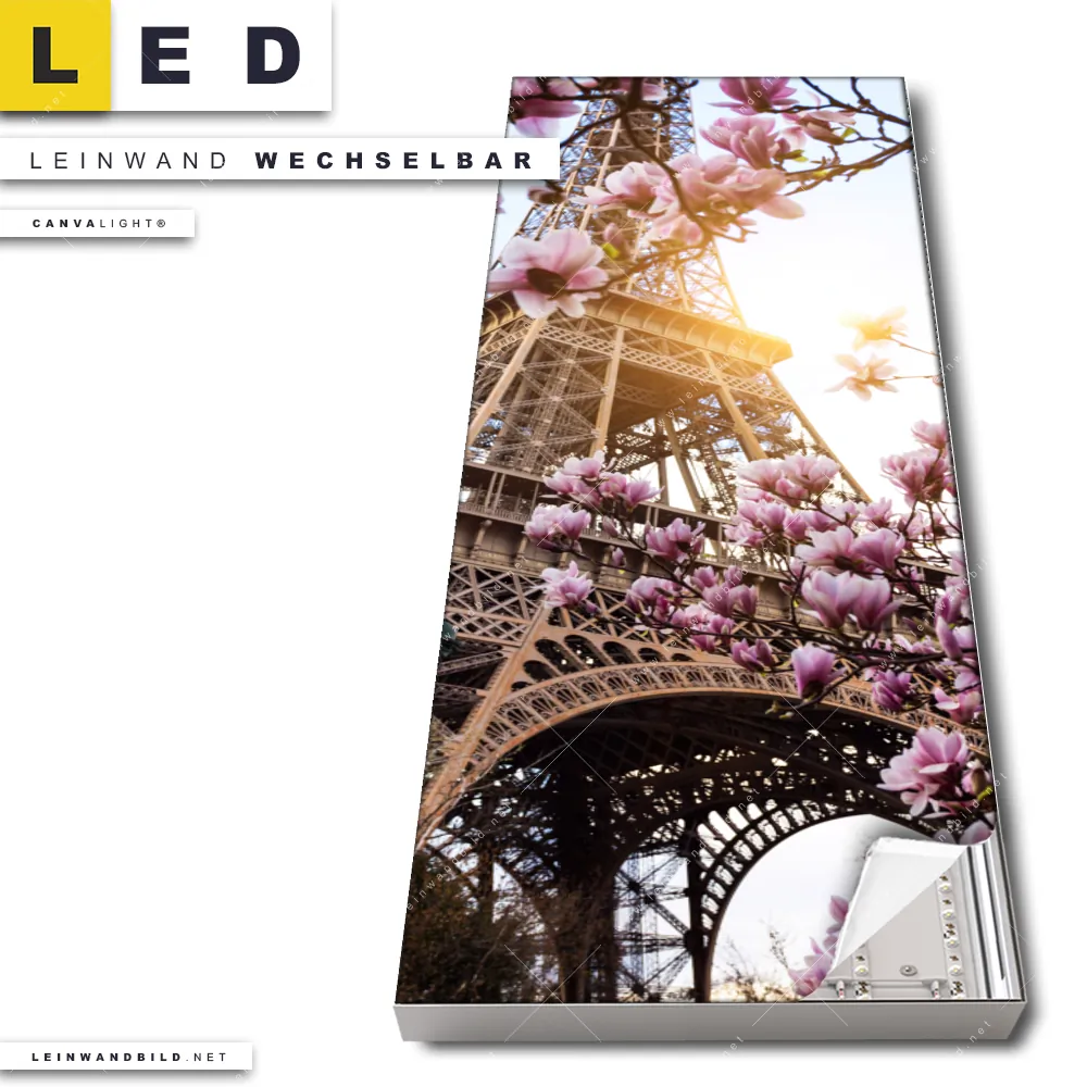 LED Leinwandbild Canvalight® TEX | Mangnolien in Paris | Schmal